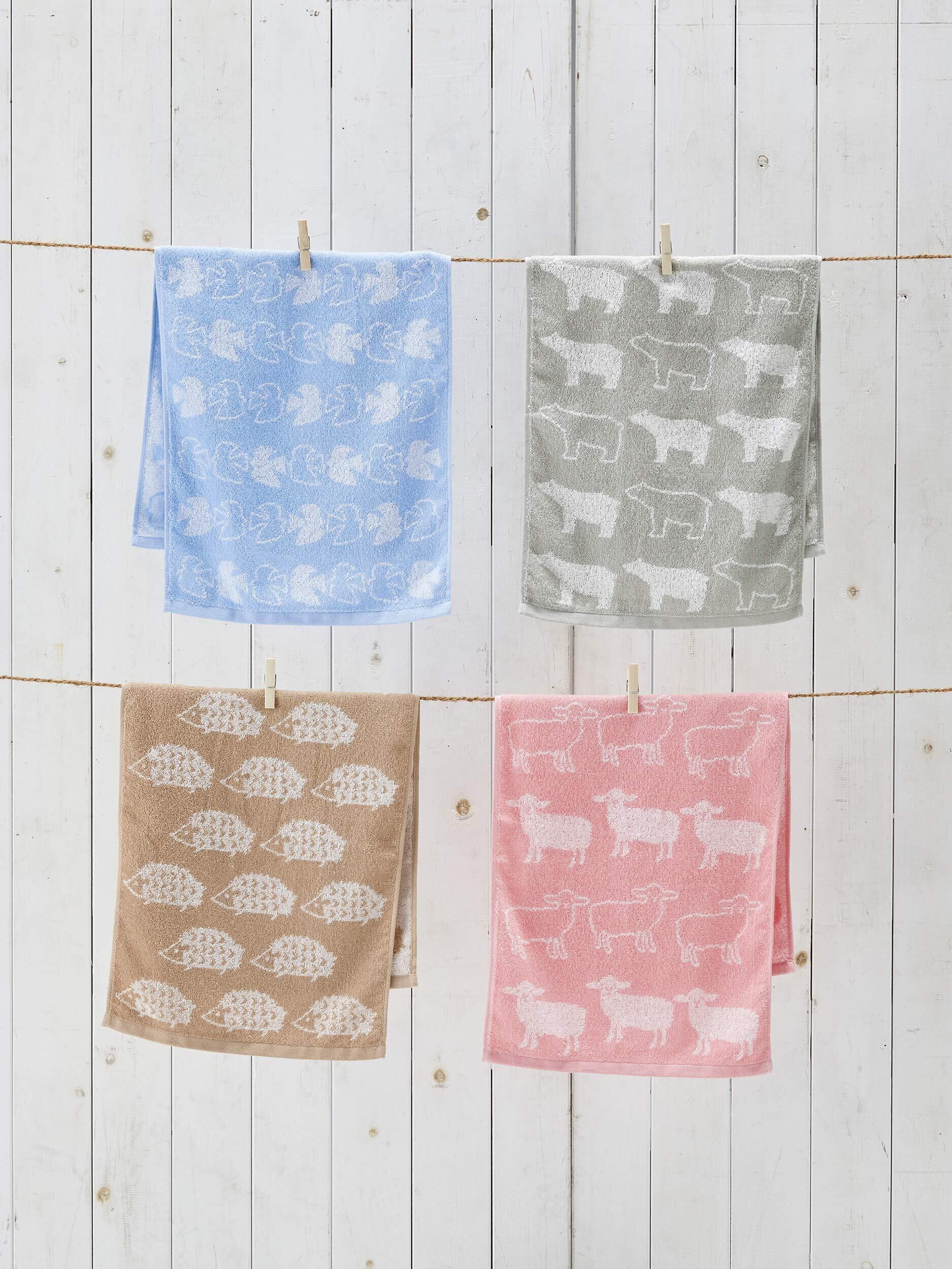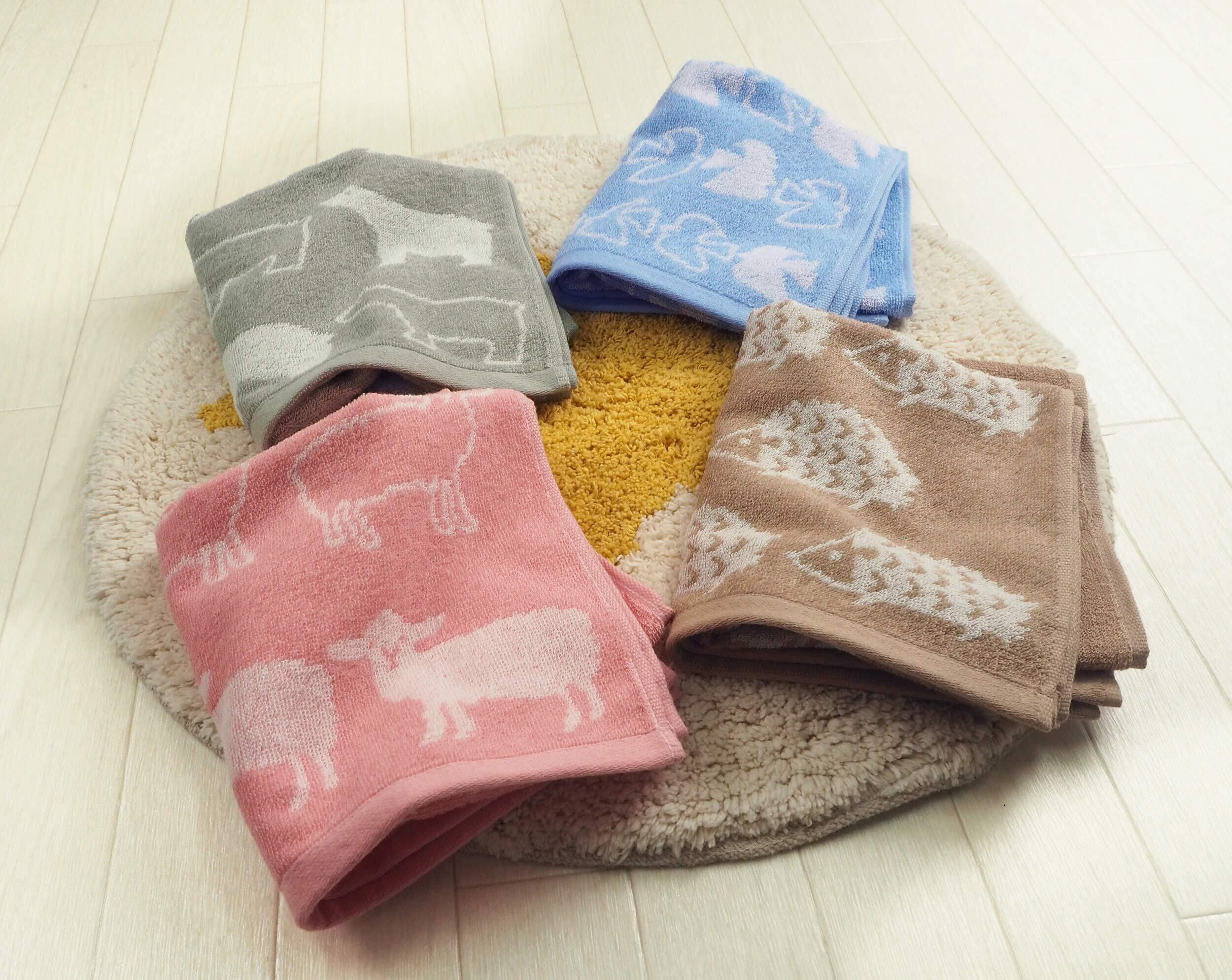 Kosugizen フェイスタオル 北欧アニマル 4色(4柄)各1枚入 34×80㎝ 北欧調のアニマルモチーフ ほどよいボリューム感 4枚セット SV-263-4
