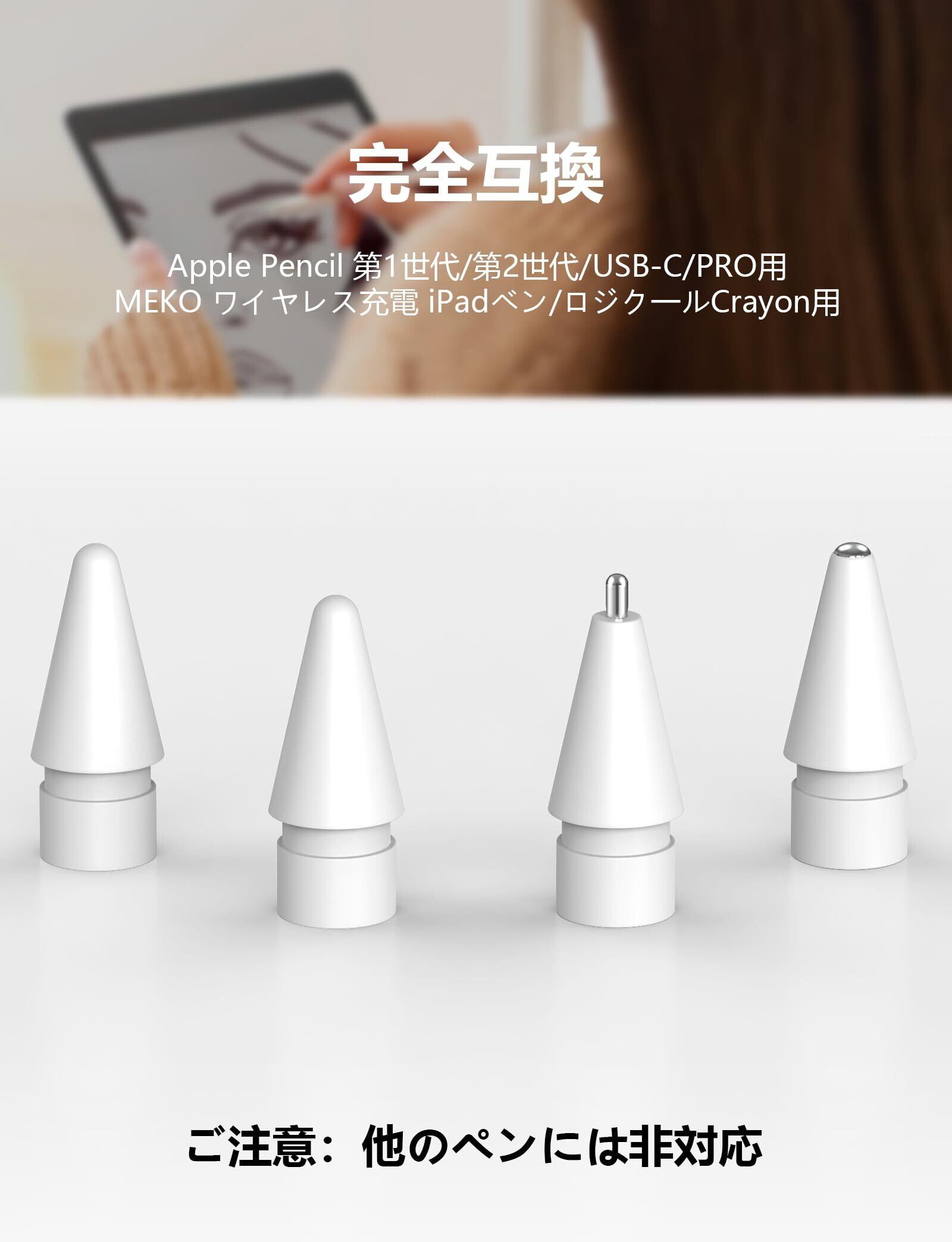 MEKO アップルペンシル 交換用ペン先 Apple Pencil 第1/2世代/USB-C/Pro用 アップルペンシル ペン先 ipad pencil ぺん先 金属製 替え芯pencil交換用チップ ペンシル 替え芯 高感度 4種セット ホワイト