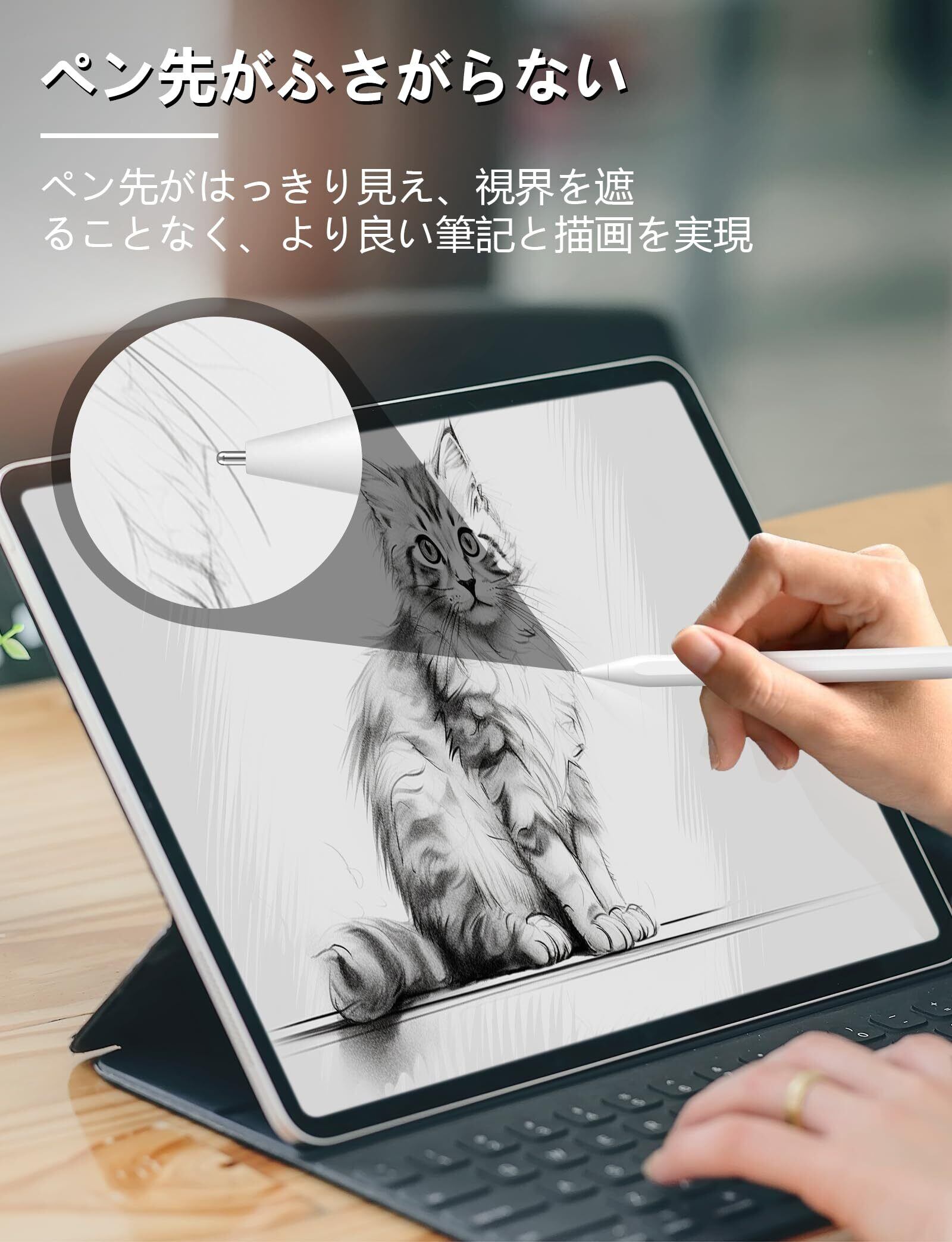 【完璧な対応性】Apple Pencil 第1/2世代/USB-C/Pro、ロジクール Crayonに対応しています。iPadに保護フィルムを貼り付けても使用できます。交換用チップは特別に設計Apple鉛筆の形をしています。オリジナルの先端とまったく同じサイズ、ペーパーライクフィルムと一緒に使うと、更に紙に描いているよう描き心地になり、 安全で確実に使用されています。