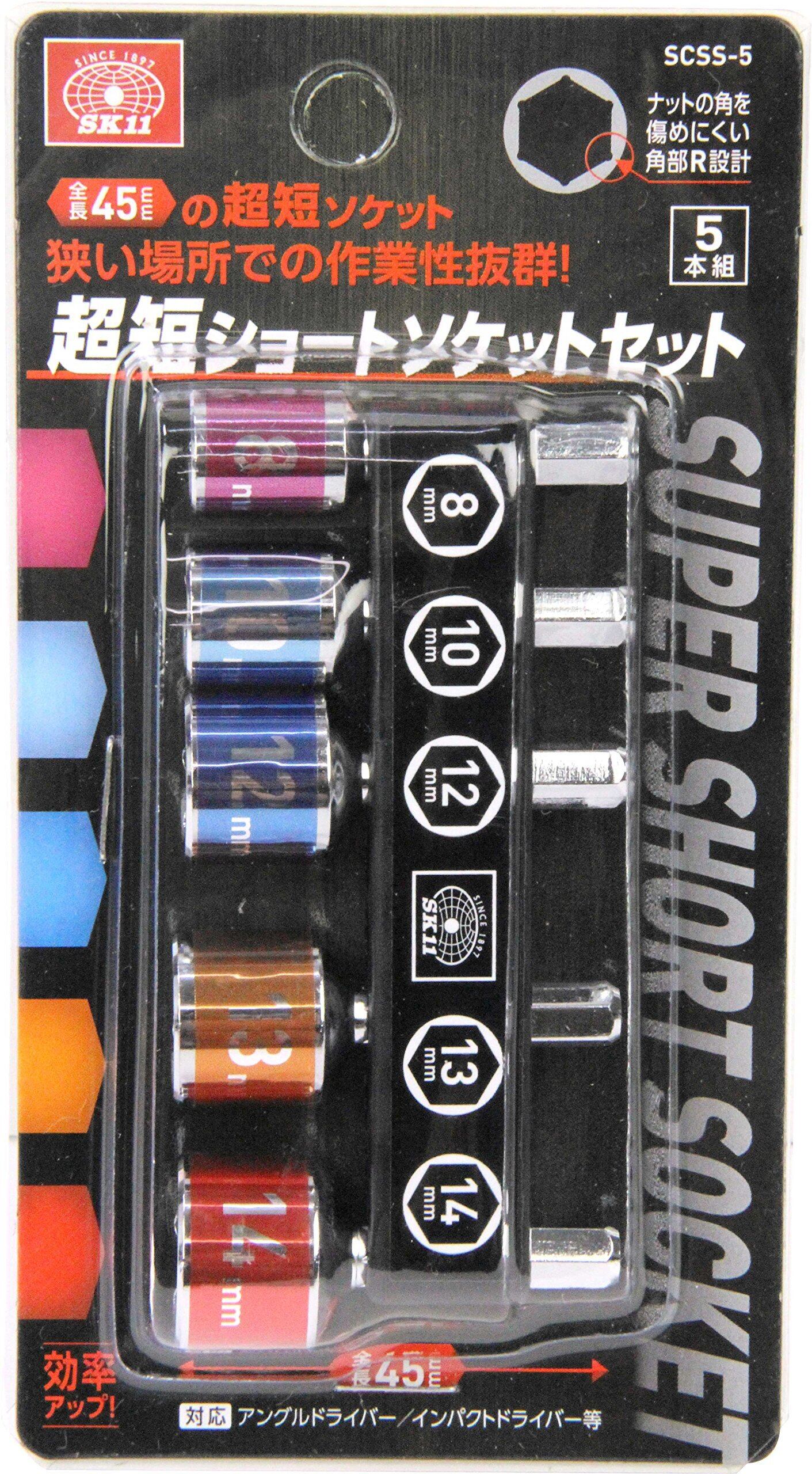 SK11(エスケー11) 超短ショート ソケットセット 全長45mm 5本組 8/10/12/13/14mm SCSS-5