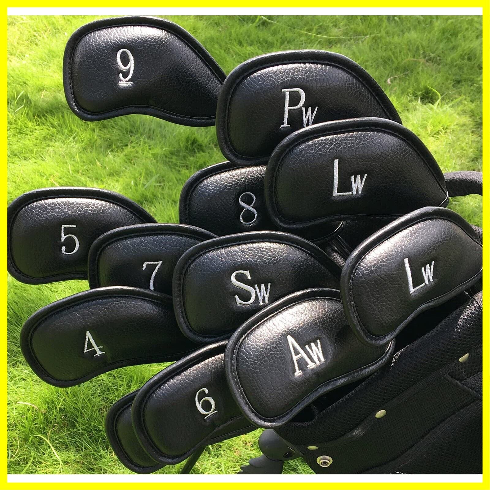 CRAFTSMAN(クラフトマン) ゴルフアイアンカバー マジックテープ開閉 ヘッドカバー セット 12枚入り(3〜9、Aw、Pw、Sw、Lw、Lw)番号刺繍 ウェッジカバー 合成レザー