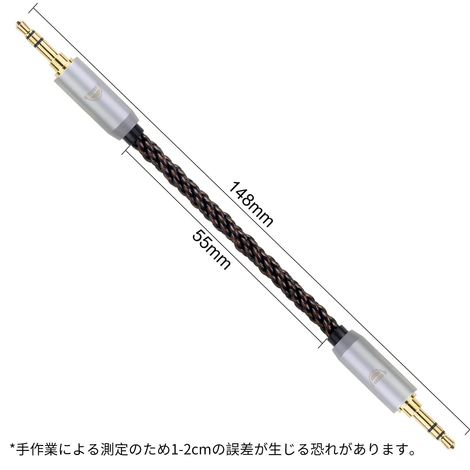 okcsc AU8 オーディオケーブル ステレオミニプラグ AUXケーブル 両側オスオス 3.5mm(オス)→3.5mm(オス) 8芯 OFC 金メッキ スマートフォン、アンプ、オーディオプレーヤー等に適用 約15cm