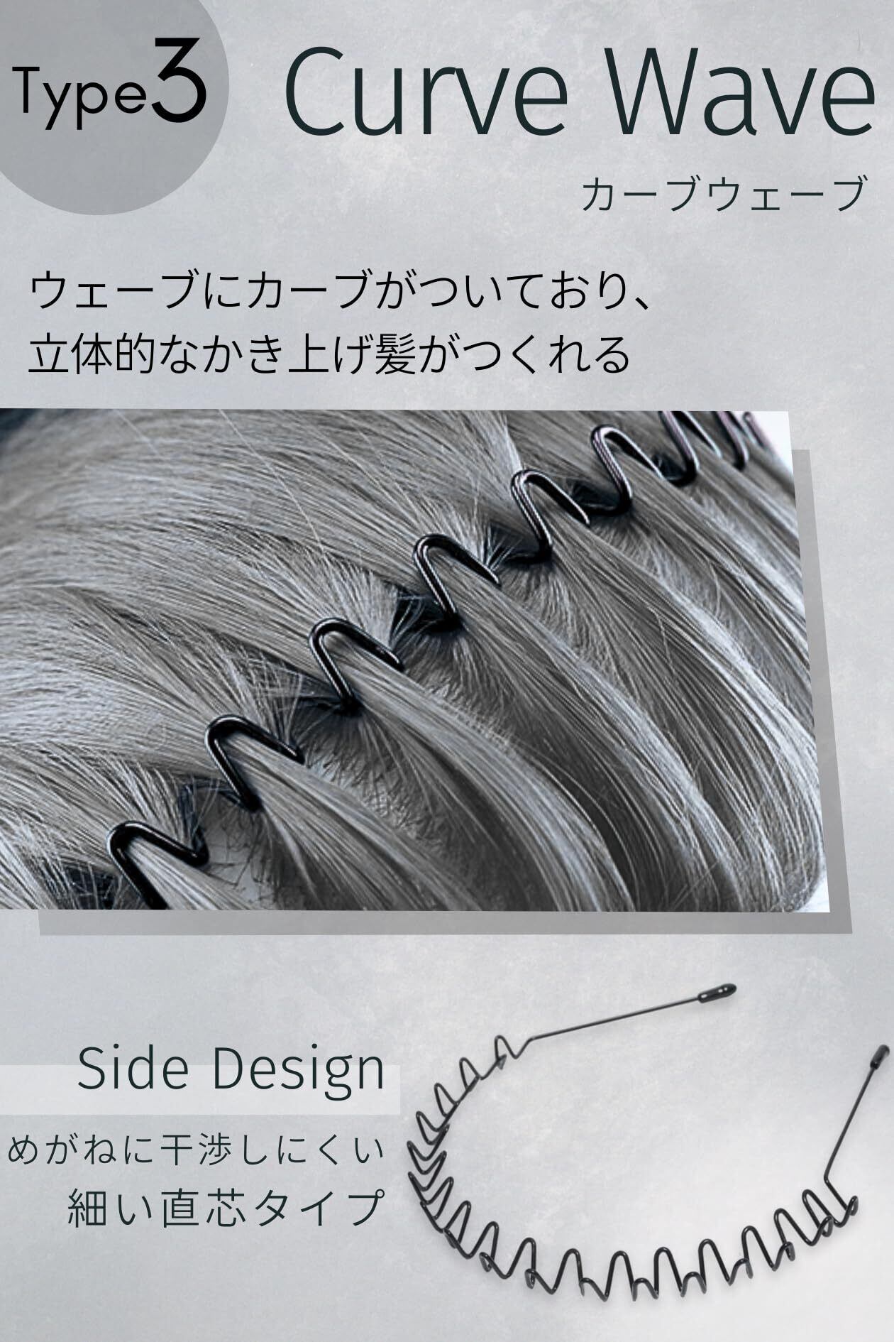 【しっかり留まる】異なる3タイプの波型(ウェーブ型・コーム型)をご用意しました。計算されたウェーブデザインでしっかり髪の毛をホールドしながら、おしゃれなスタイリング・ヘアアレンジをお楽しみいただけます。