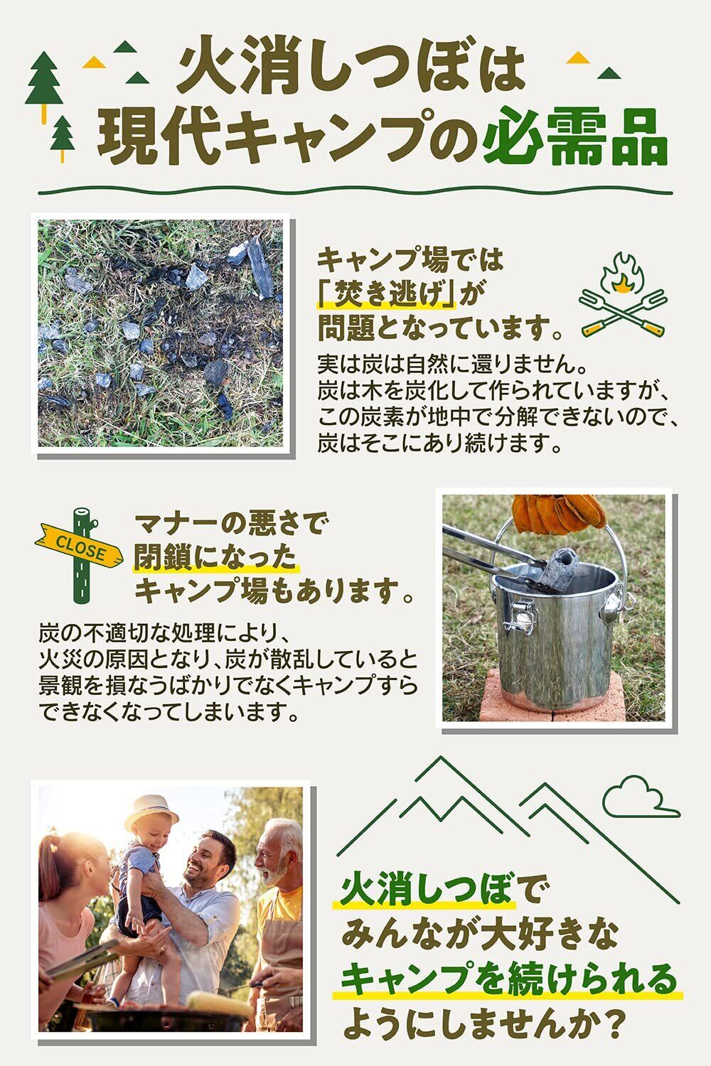 【現代キャンプの必需品】燃えカスを放置する「焚き逃げ」が問題となっています。火災の原因となり、景観にも良くなく、マナーの悪さから閉鎖するキャンプ場もあります。 火消しつぼで適切に処分して、大好きなキャンプを続けられるようにしませんか?