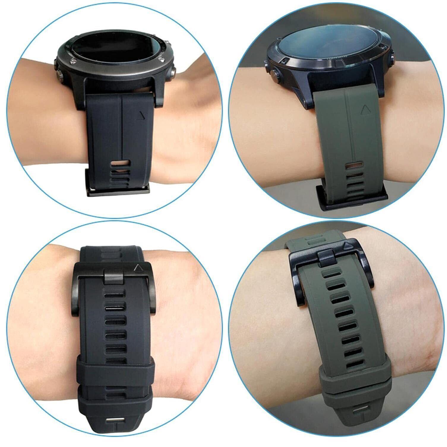 [Ahayo] QuickFit 22mm 2パック防水替えバンド に適合するガーミンFenix 8 47mm / epix Pro 47mm / Instinct 2 Solar, 留め金具の シリコン スポーツ ベルト用のGarmin Fenix 7/Fenix 6/ Approach S62 /S70 47mm (黒と緑)