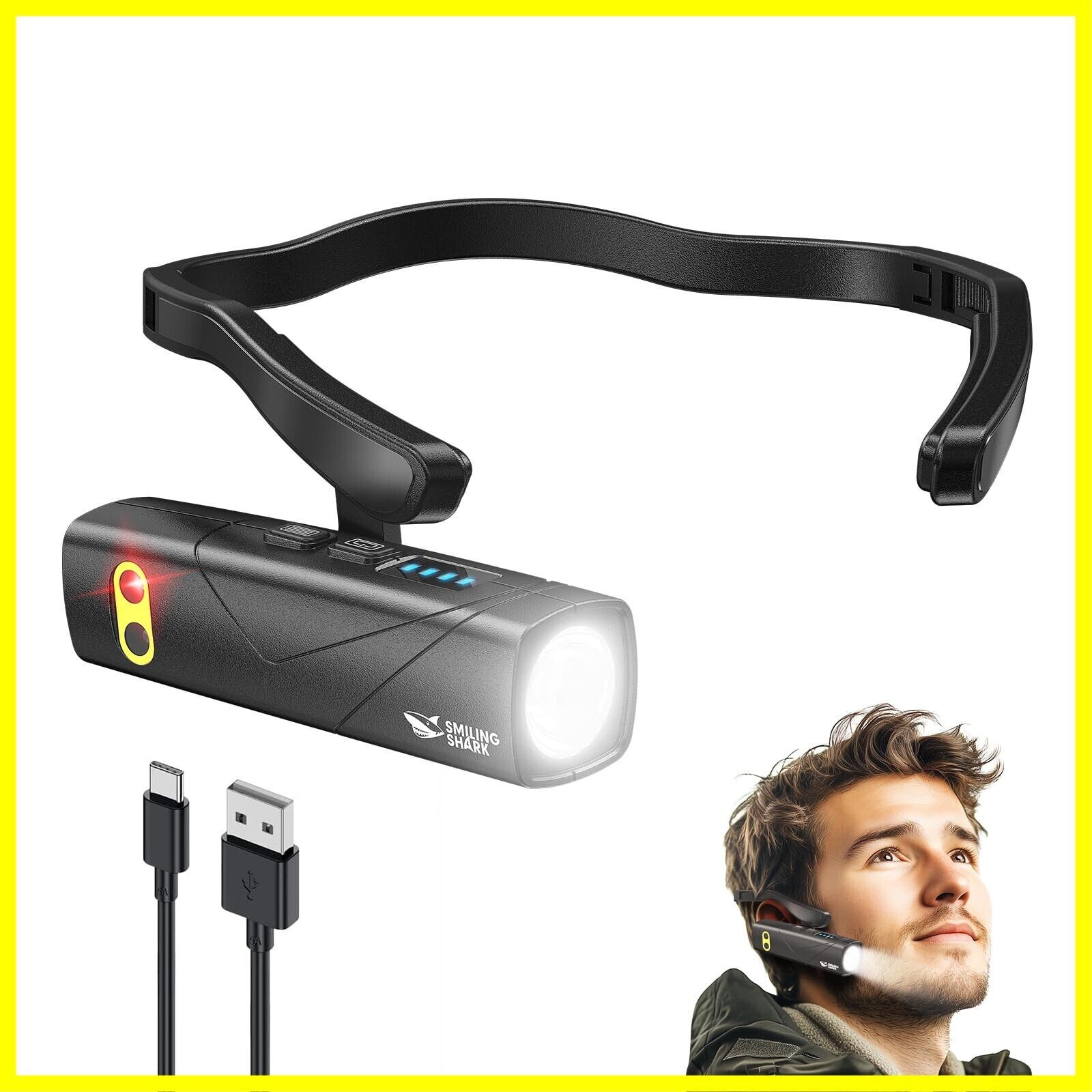 Smiling Shark 充電式 LED ヘッドライト, 【新概念耳掛け式・白色光・赤色光】 耳装着式ヘッドランプ センサー付き USB充電可能 5つの照明モード 高輝度アウトドアヘッドランプ 230°広角照明 超軽量 IPX4 防水防塵 8時間連続使用可能 キャンプ 登山 散歩 釣り 作業 停電用 防災用 最適 日本語取扱説明書