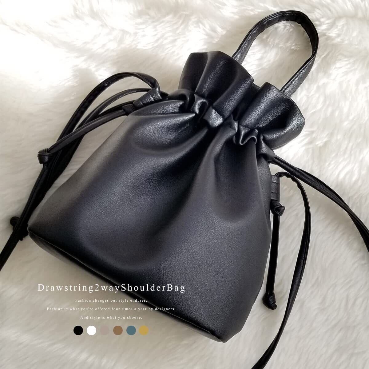 ころんとしたフォルムの2way巾着バッグ。 柔らかく上品なフェイクレザー素材で、 季節を選ばずオールシーズンお使いいただけます。