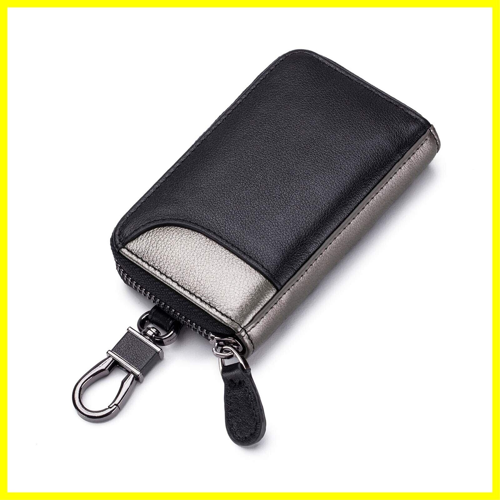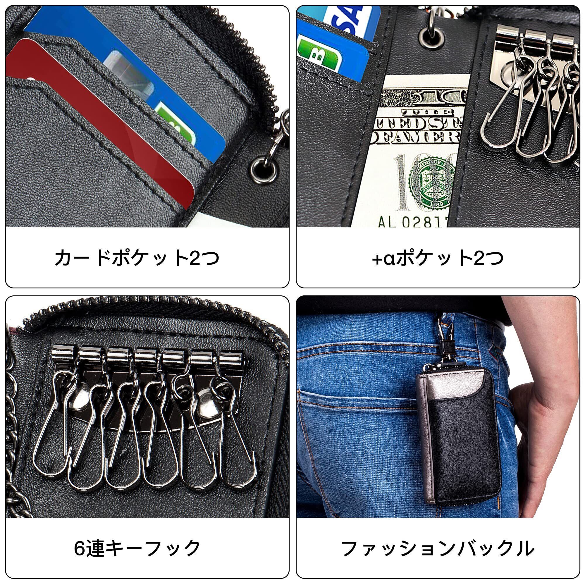 [MBOYU] キーケース メンズ 本革 2つ外側ポケット カード収納 スマートキーケース 車 6連 カード 免許証 定期入れ 大きめ カラビナ おしゃれ ジッパー たくさん入る 丈夫 便利 プレゼント