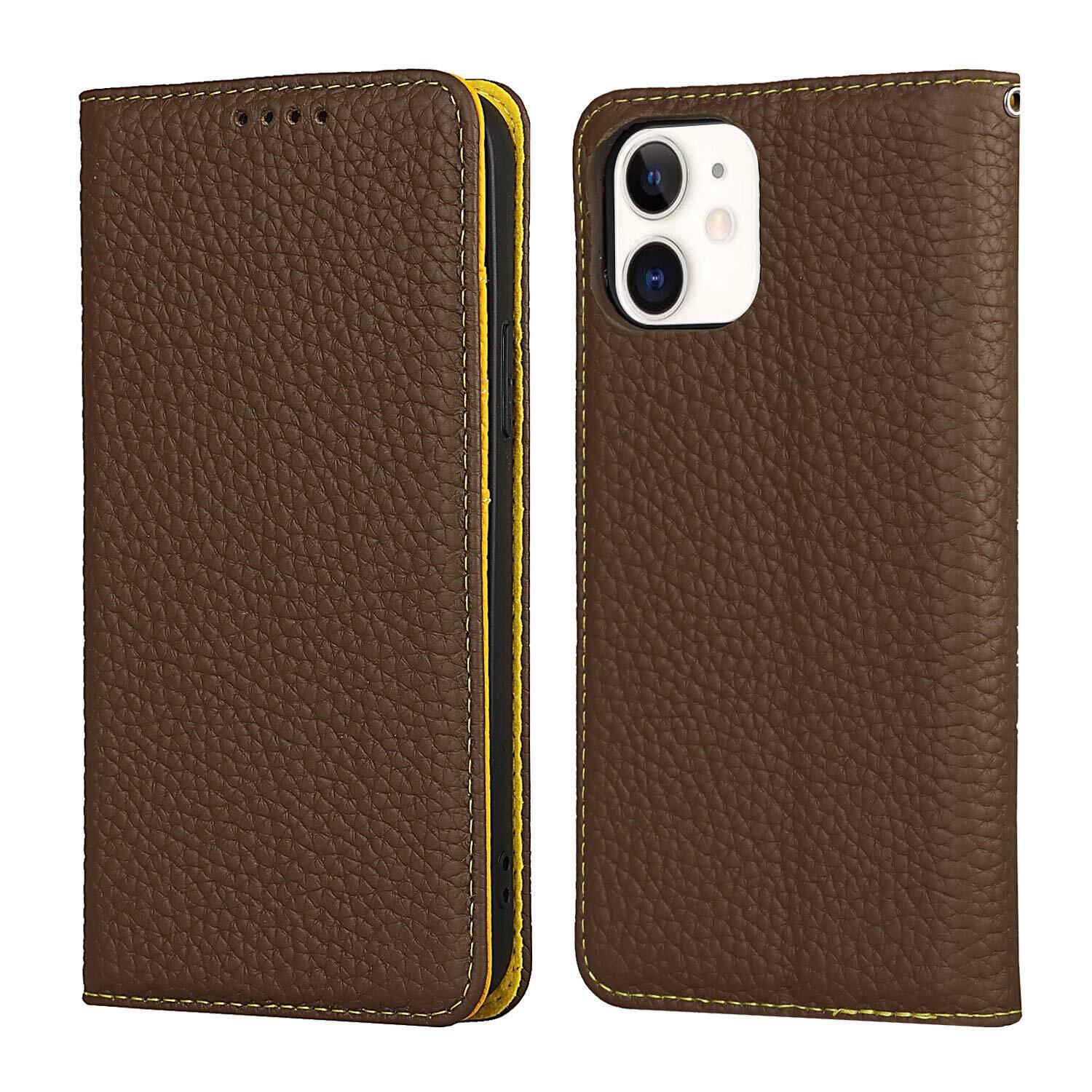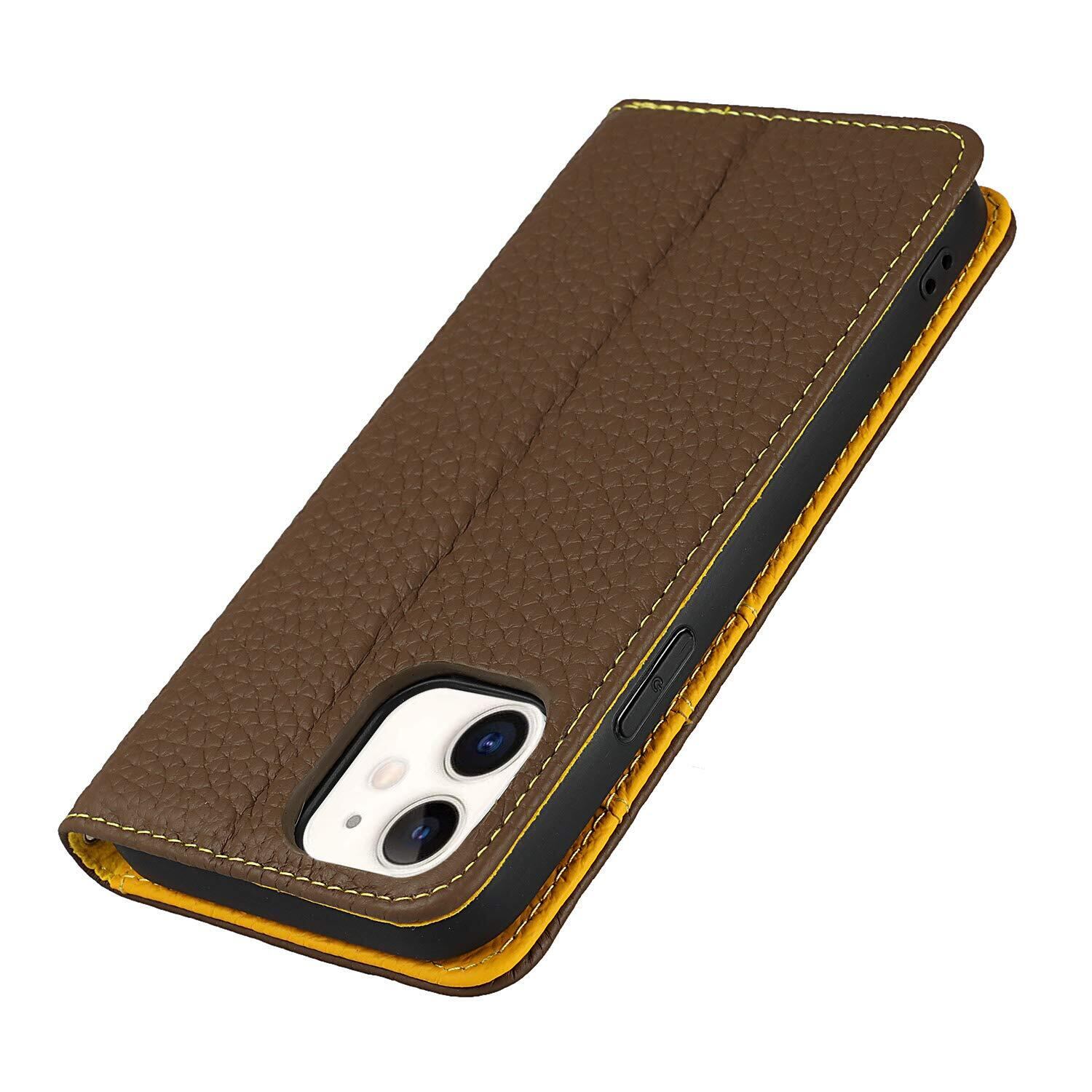 Eastwave アイフォン for iPhone 12 Mini ケース 牛革 本革 手帳型 for iPhone 12mini 財布型カバー for iPhone12 mini 本革 手帳型 携帯スマホカバー 人気 おしゃれ 内蔵マグネット 耐汚れ 耐衝撃 カード収納 軽量 人気- ブラウン