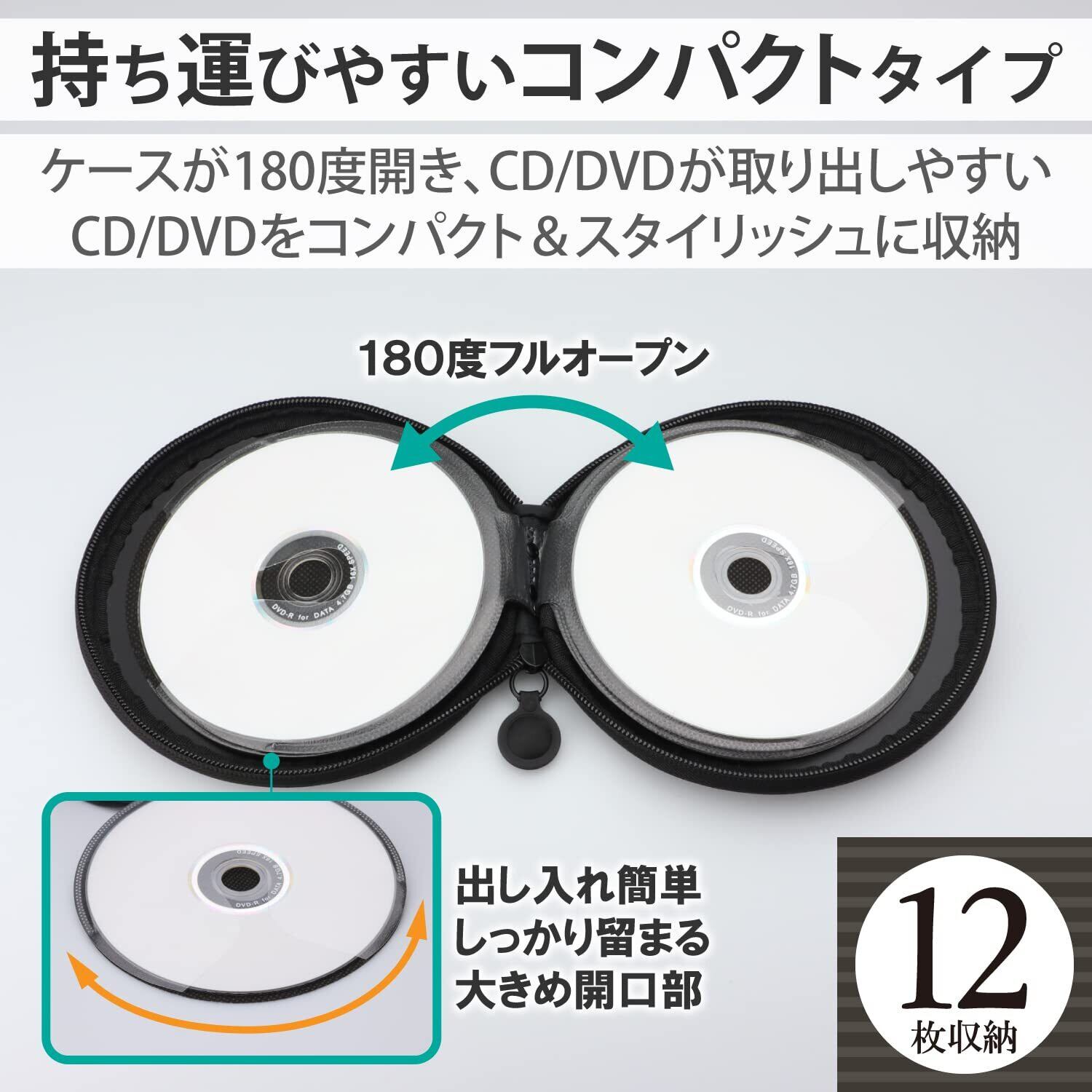 エレコム DVD CDケース セミハード ファスナー付 12枚収納 ブラック CCD-H12BK