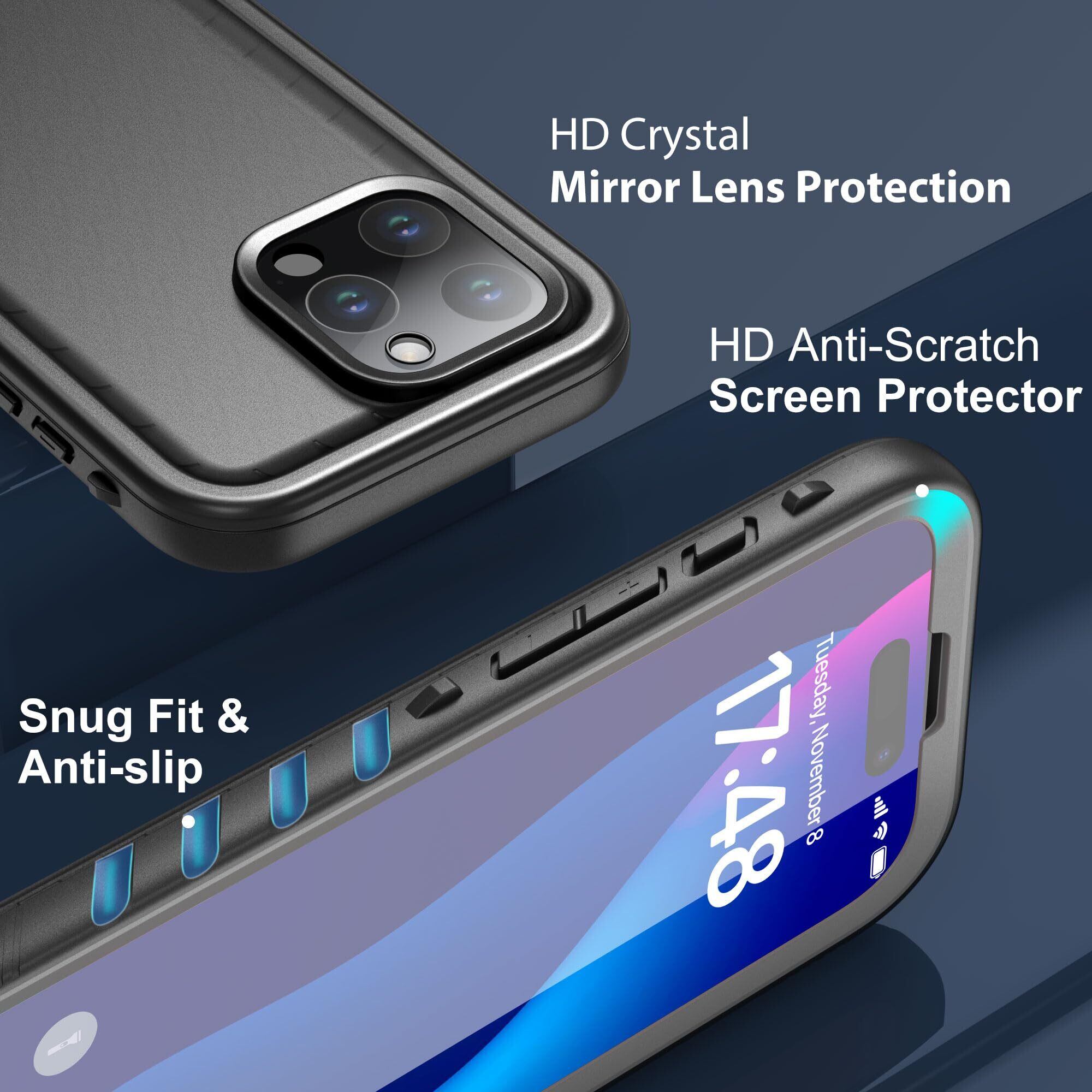 【IP68規格&防水】いPhone15 pro 防水ケースは完全密封で、IP68防水規格等級を取得しておりました。水深さ2mの水中に1時間まで水没できます。また 釣り、お風呂、夏のプール、雨の日、冬のスキーいろいろな場合でも、いつもで安心してご利用いいただけます。