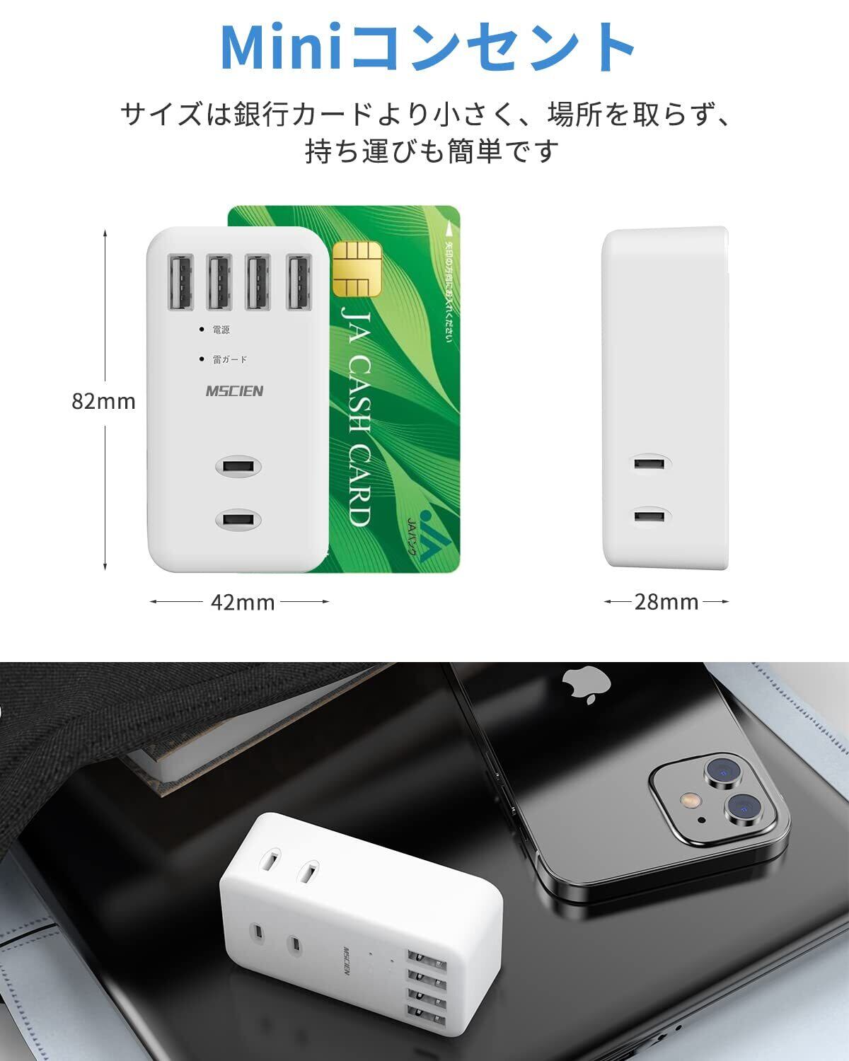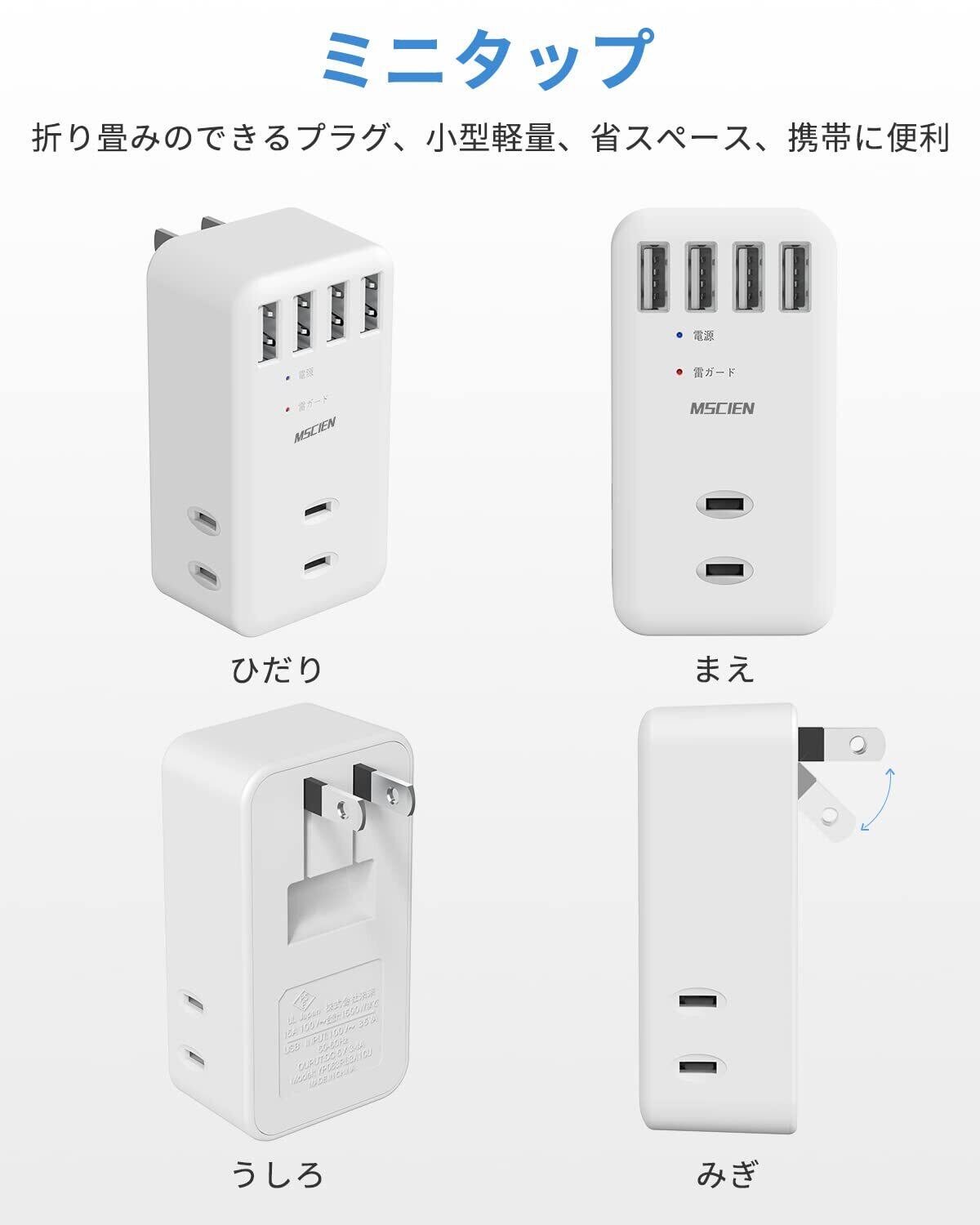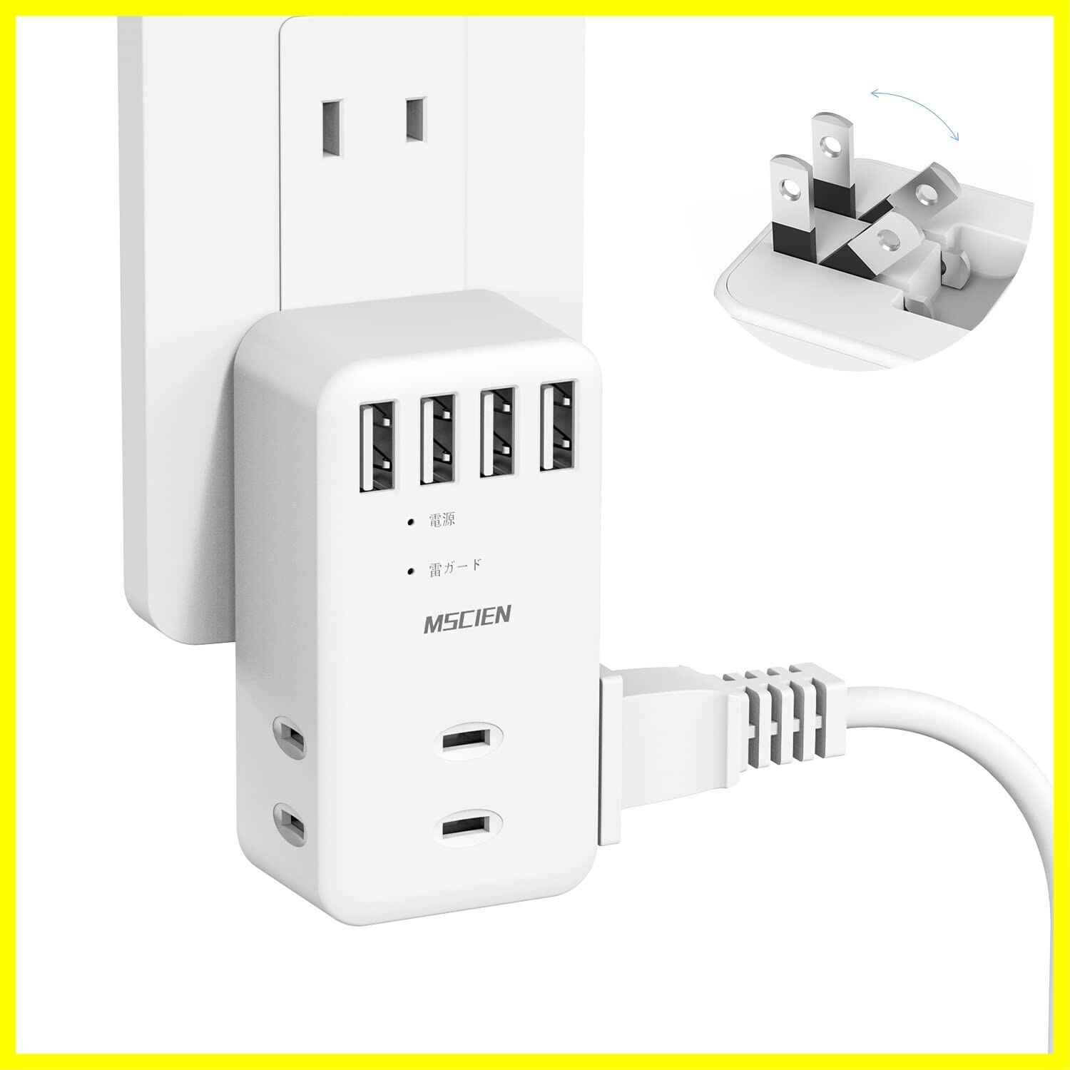 Mscien 電源タップ usb 雷ガード コンセントタップ 3個AC口 4個USBポート たこあしコンセント タコ足コンセント 直挿し 分岐 マルチタップ