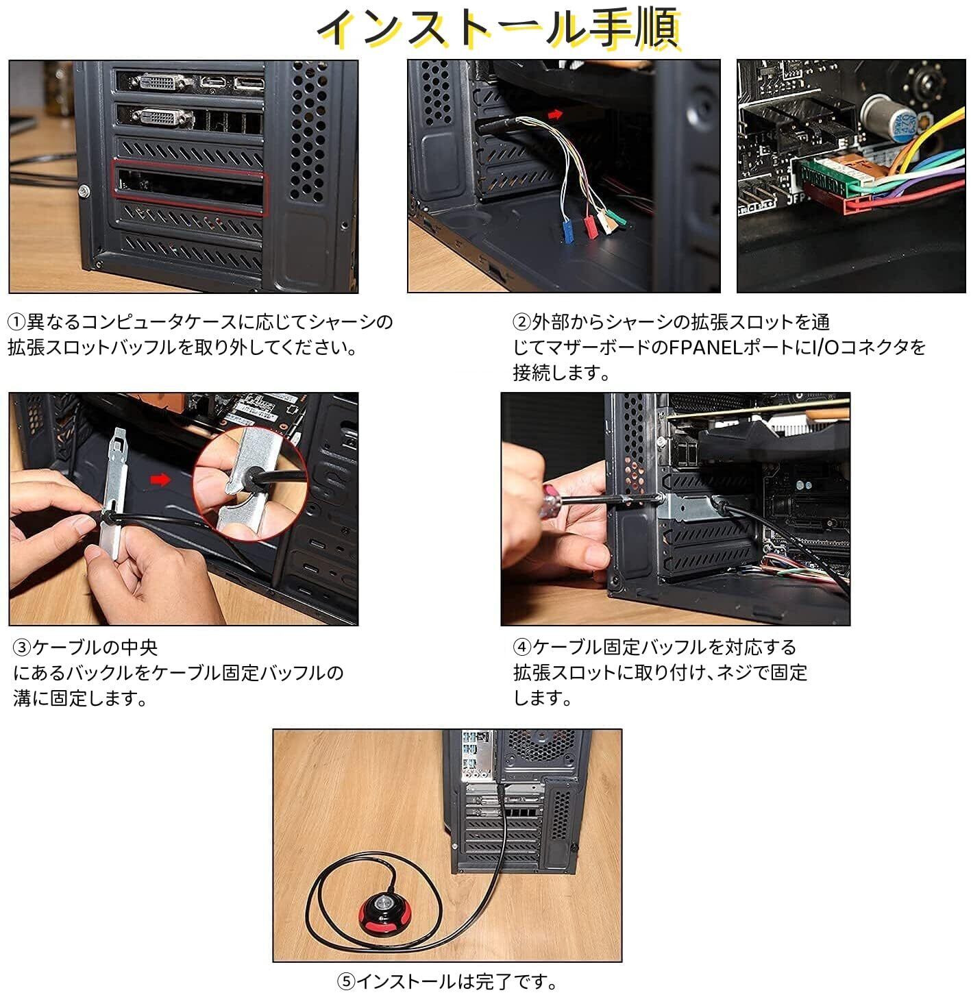 PC電源代替えボタン PC電源スイッチ 外付け電源ボタン パソコンリセットスイッチ デスクトップコンピューターケース用 電源ランプ HDDランプ リセット ケーブル 電源指示ライト 接触不良の代替用 パソコン用 1.6M 両面テープ カバー
