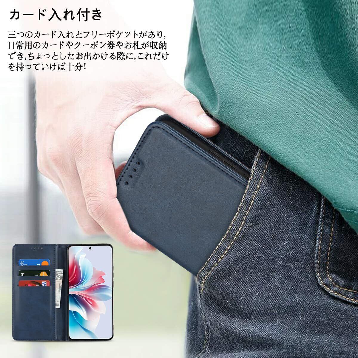 OPPO Reno11 A ケース 手帳型 Reno11A オッポ リノ 11A ワイモバイル A401OP 楽天モバイル SIMフリー SoftBank 対応 OPPOReno11A カバー オッポRENO11A スマホケース リノ11A 手帳ケース オッポ RENO 11A 適用 iCoverCase マグネット カードケース 携帯カバー カード スタンド 落ち着いた色 レトロ ネイビー