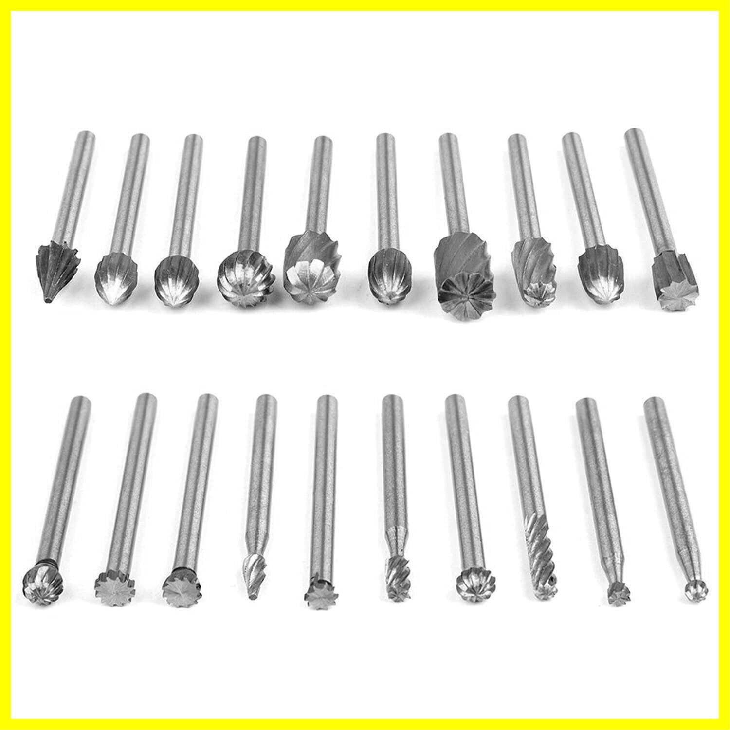KIMLONTONロータリーヤスリ 3.175mm軸 20本セットタングステンバー リューター ビット 超硬バー 高速度鋼製 木工彫刻 切削 研磨用 木工ツール