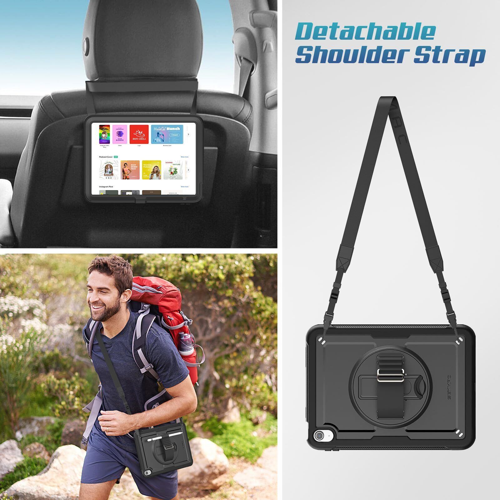 ハンドストラップ&ショルダーストラップ:どの場所、状況でも使いやすい、つけ心地の良いかつ外れにくい手を通すGフックタイプのハンドストラップ&首や肩に掛けるタイプのショルダーストラップは遊び、旅行中などにハンズフリーになります。大事なiPad A16/iPad第10世代を落とさずに操作に集中できます。現場の使用にもふさわしいです。子供にも気楽に楽しめます