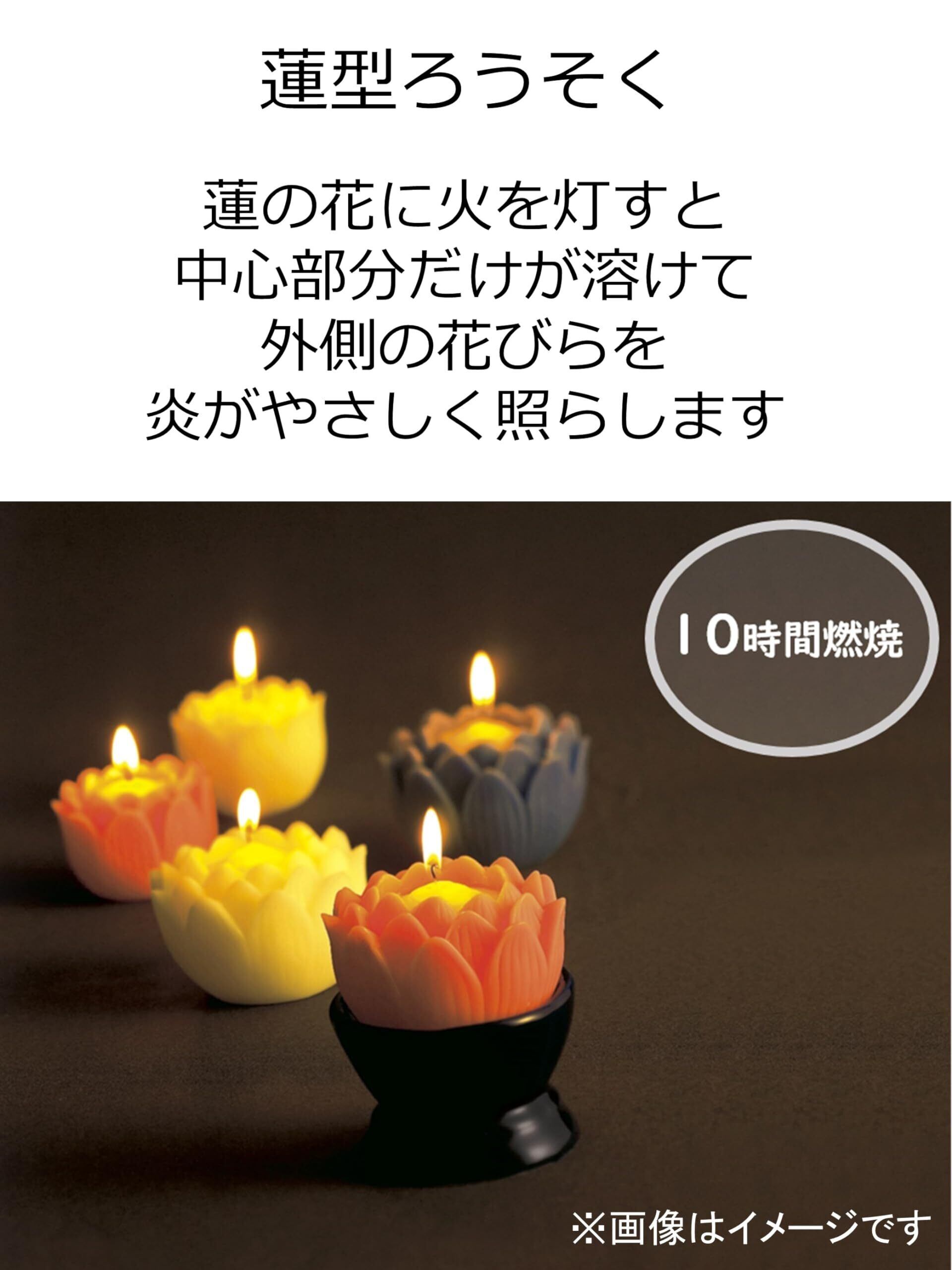 『蓮の花』は長時間のご使用に最適な燃焼時間約10時間タイプの蓮型ろうそくです。