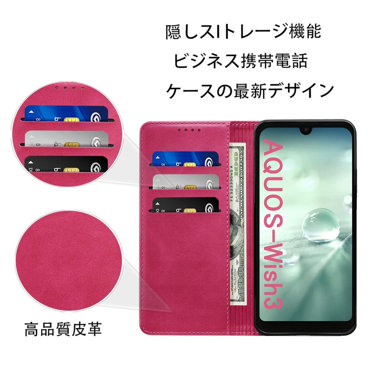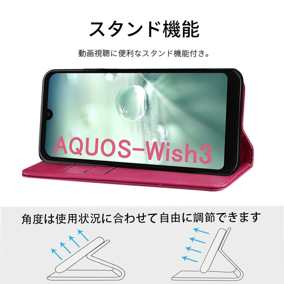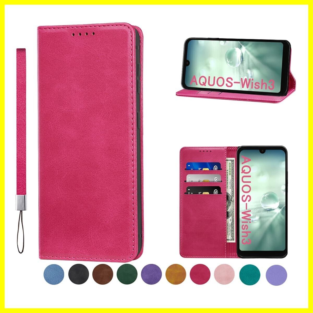 AQUOS Wish 3 ケース 手帳型 高質PUレザー AQUOS Wish 3 カバー 耐衝撃 SH-53D ケース A302SH ケース 内蔵マグネット開閉式 ベルトなし スマホケース おしゃれ カードポケット スタンド機能 便利 スプラット同梱 携帯ケース(ローズレッド)