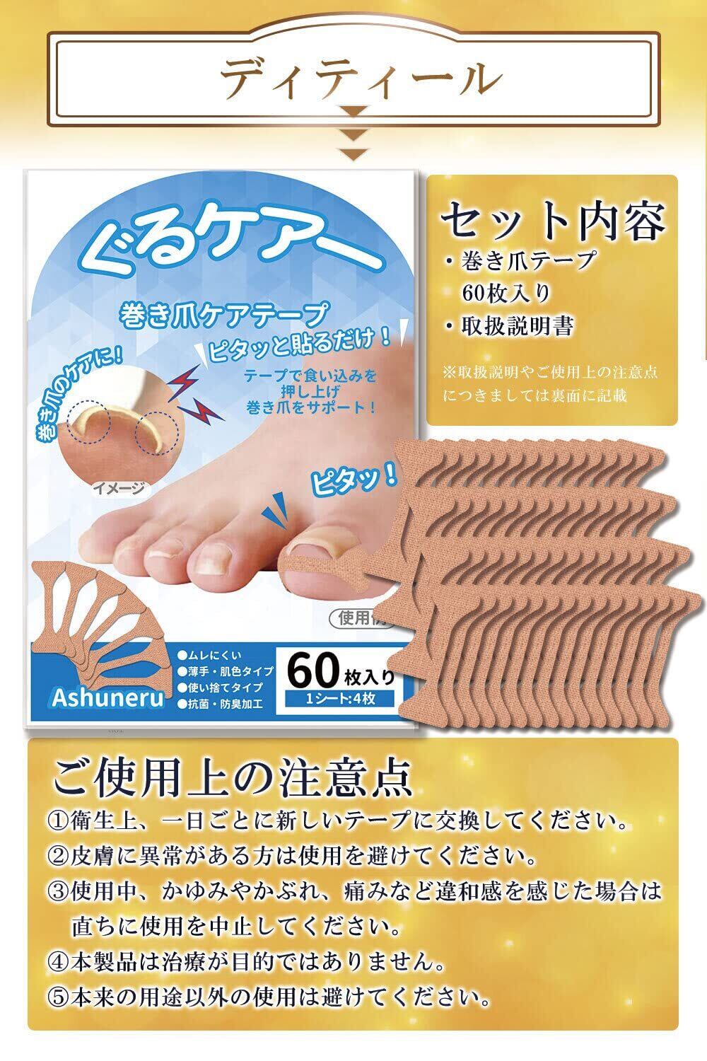 Ashuneru ぐるケアー 巻き爪テープ まきづめケア 大容量 60枚入り