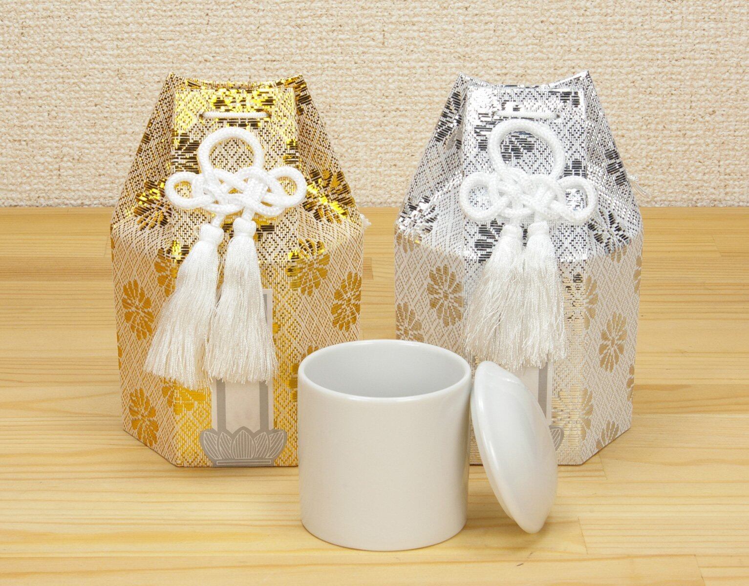 材質 骨袋:布生地 骨壺:陶磁器