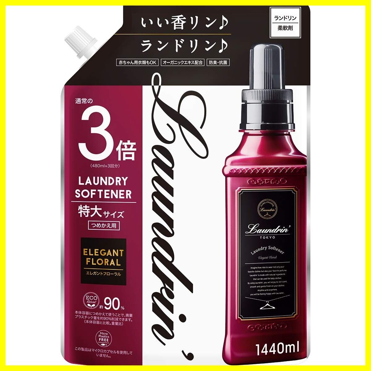 Laundrin'(ランドリン) 柔軟剤 特大容量 エレガントフローラル 詰め替え 3倍サイズ 1440ml