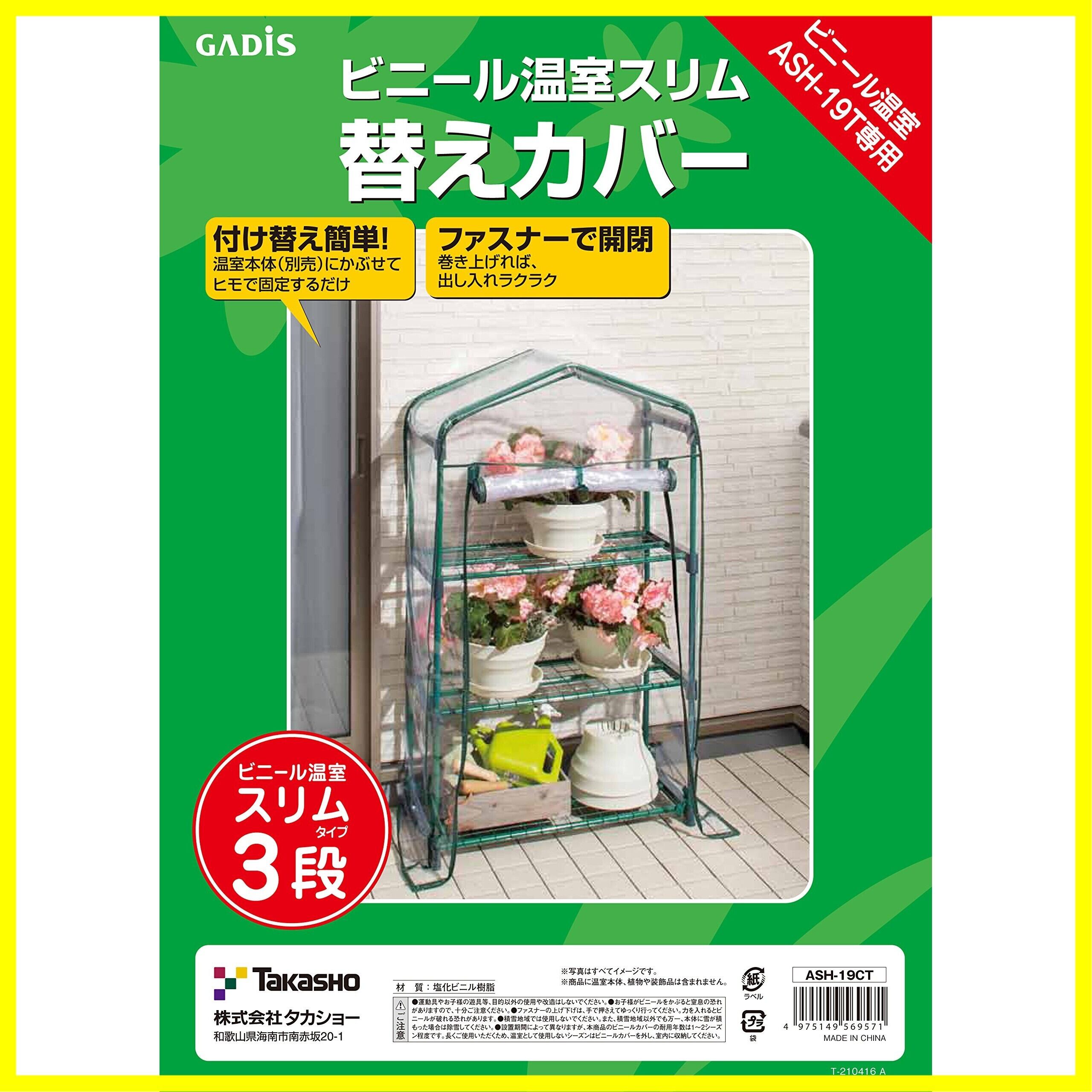 タカショー 温室 ビニール温室 スリム 3段用 替えカバー 幅69.5cm×奥行31.6cm×高さ122.5cm ビニールハウス防寒 植物 育苗【ASH-19CT】