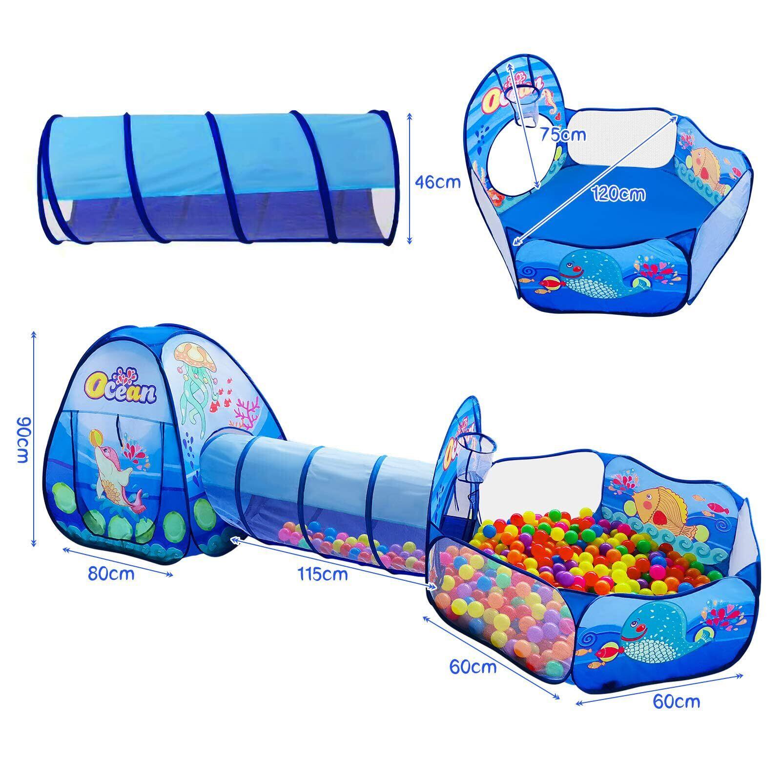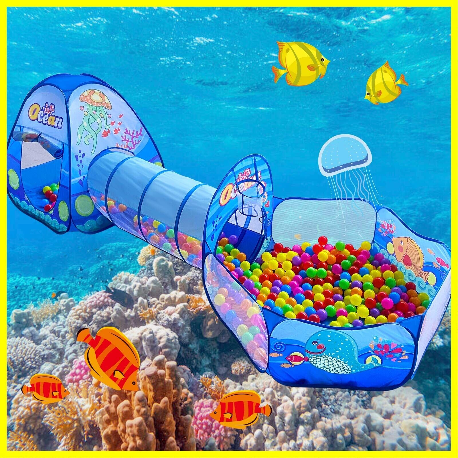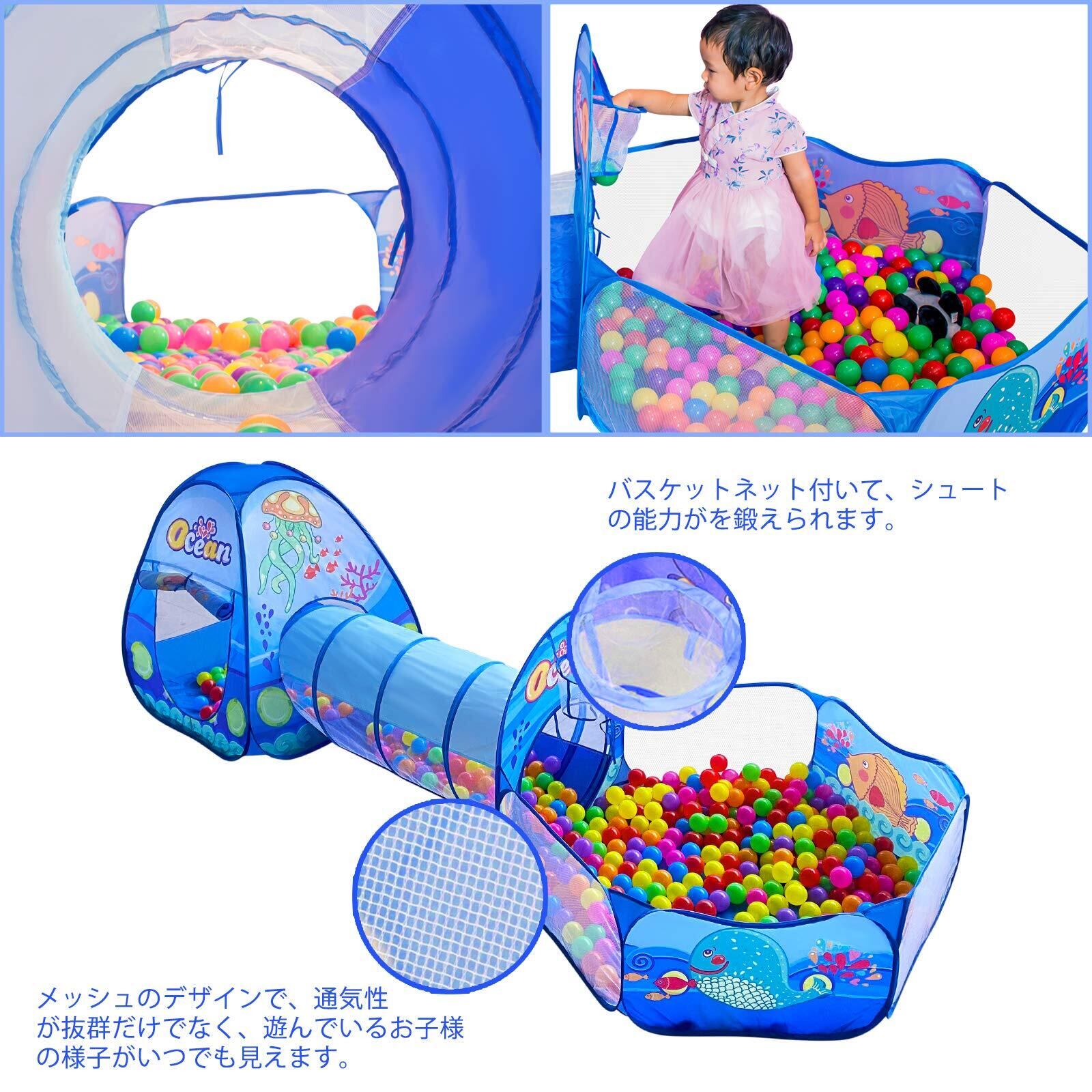 キッズテント 3点セットの子供テント トンネル・バスケットネット付きのボールプール 折り畳み式 誕生日 出産祝い プレゼント 秘密基地 おもちゃ (海の世界)