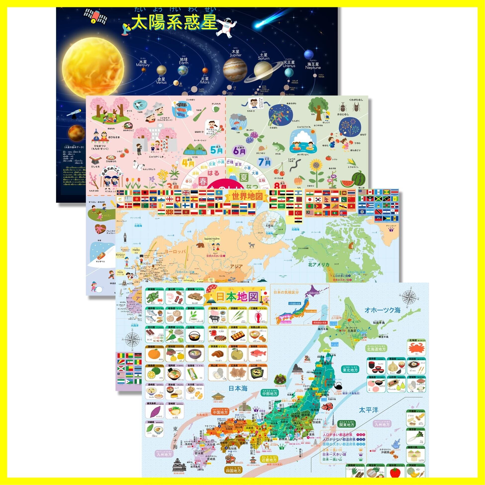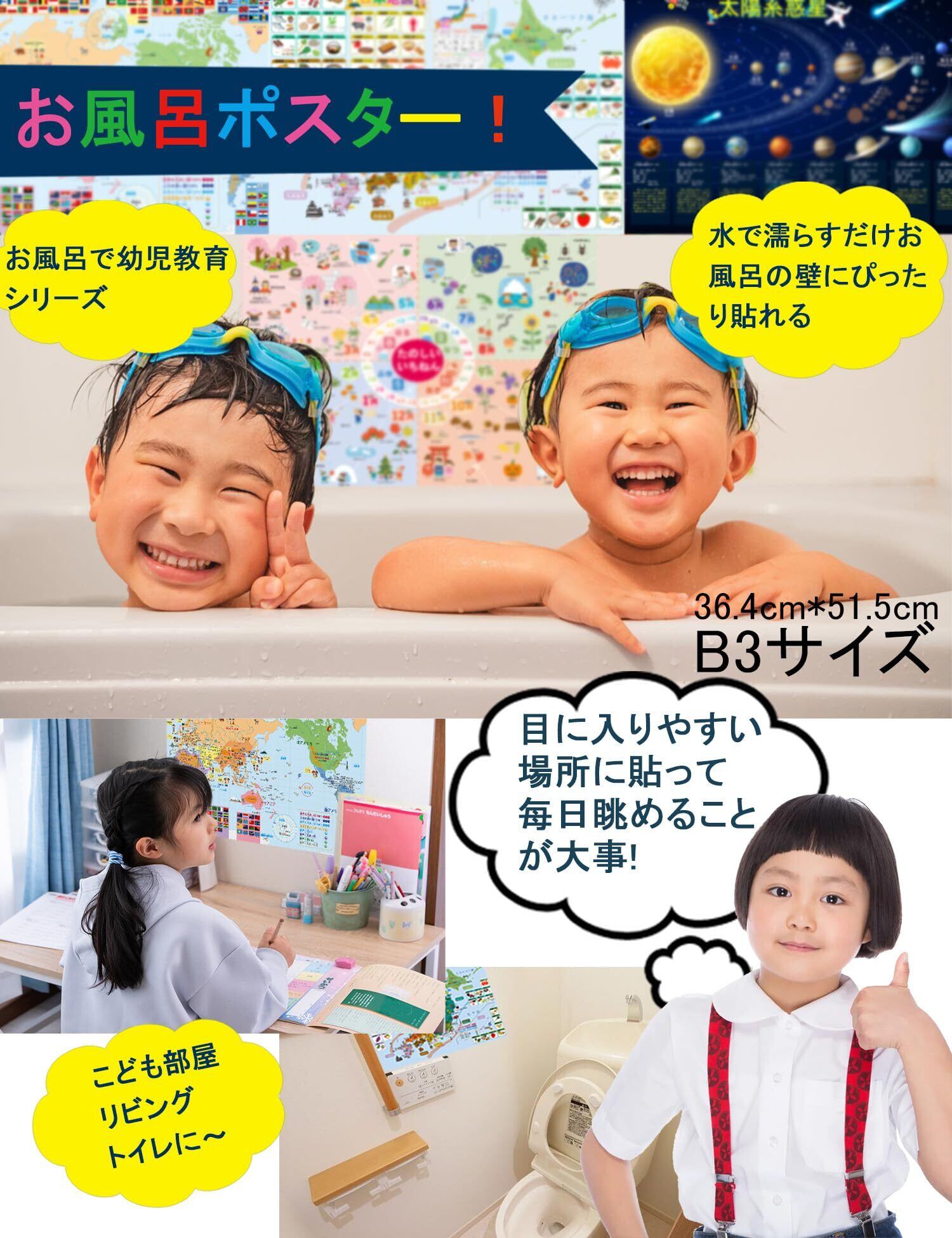 世界地図 日本地図 宇宙地図(太陽系)お風呂ポスター 四季 B3サイズ 4枚セット 地理 社会 知育 防水 受験対策