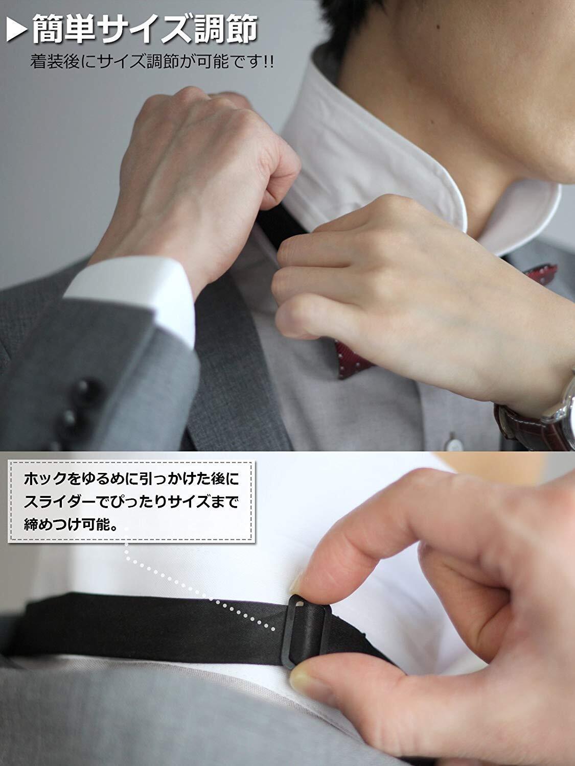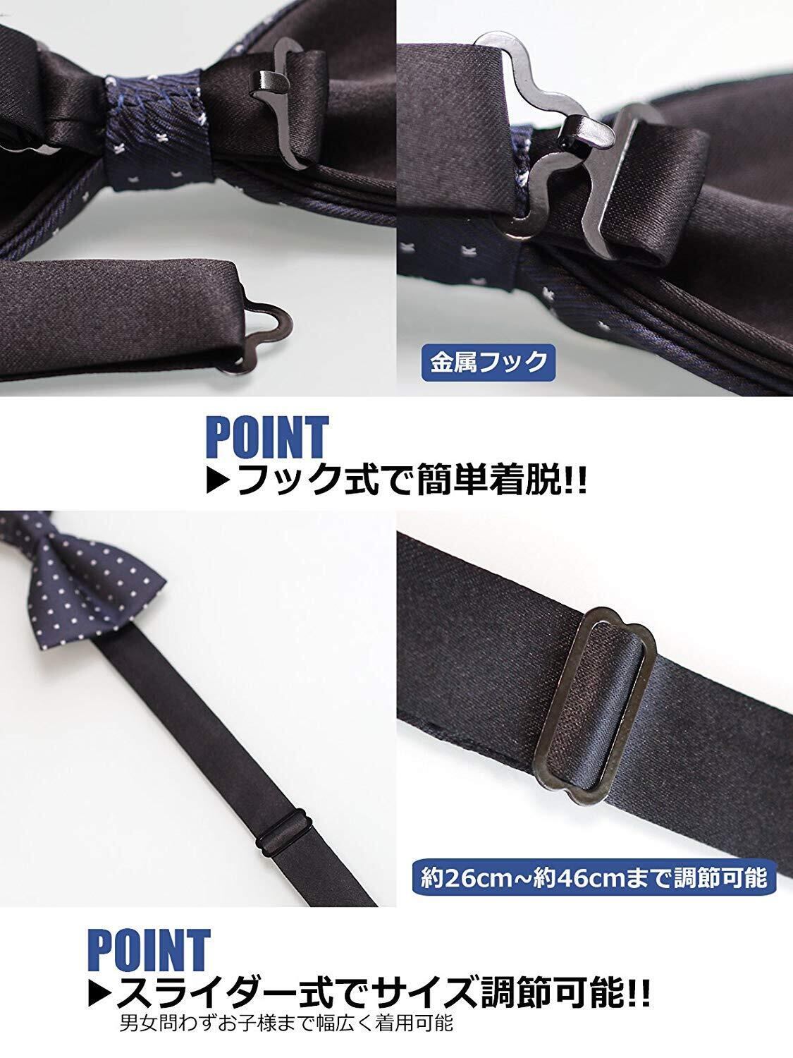着脱簡単なホック式。リボン部分は2重仕立てで重厚感のあるボウタイ(蝶ネクタイ)になっています。
