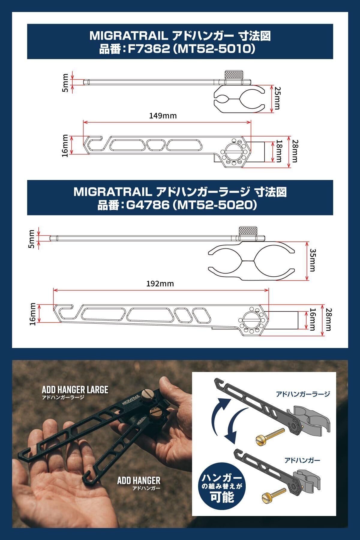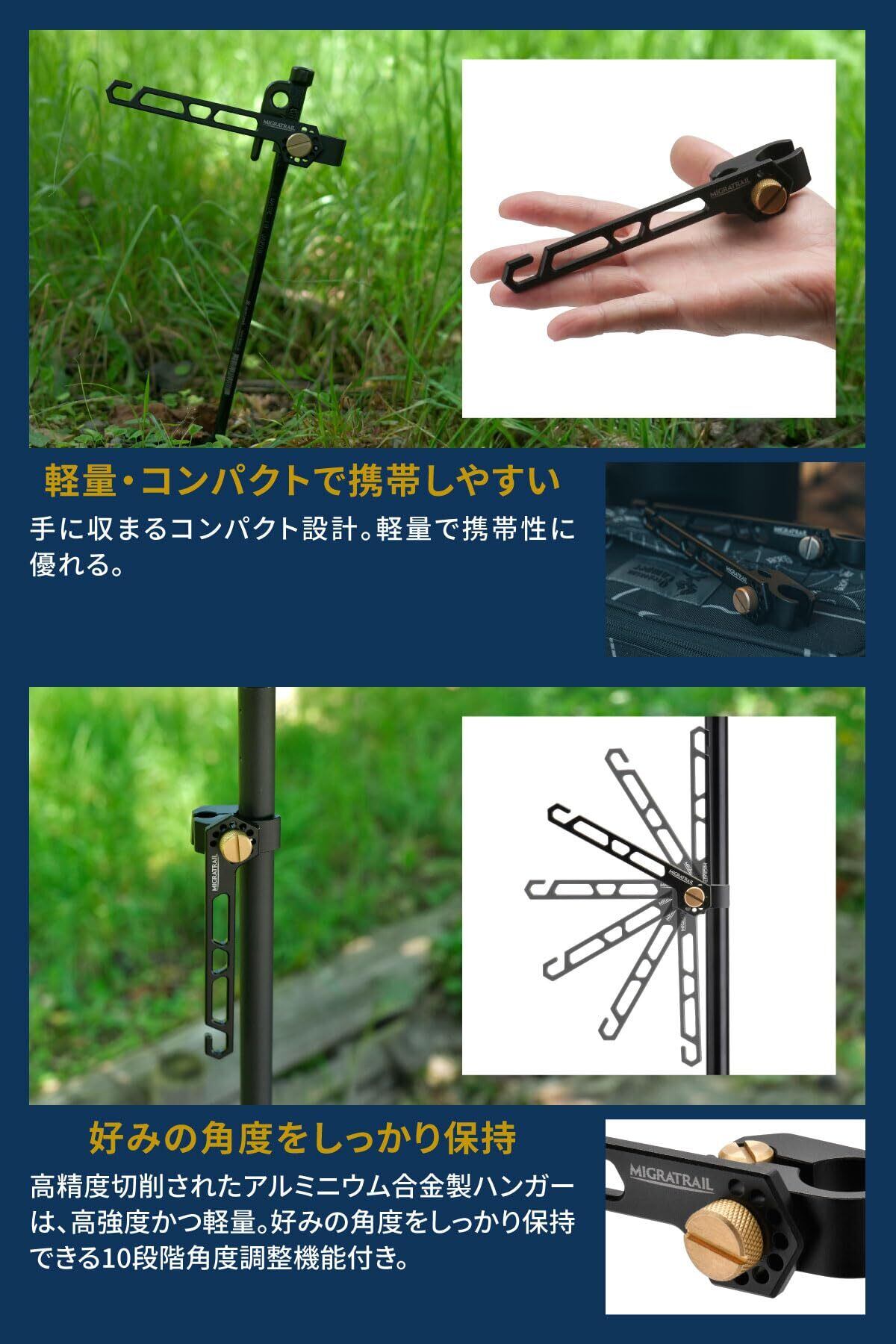 ダートフリーク(Dirtfreak) MIGRATRAIL アドハンガー マルチハンガー パイプクランプ 角度調整機能 カメラ三脚に取付け可能 コンパクト 軽量 携帯 キャンプ アウトドア ランタン シェラカップ F7362(旧品番:MT52-5010)