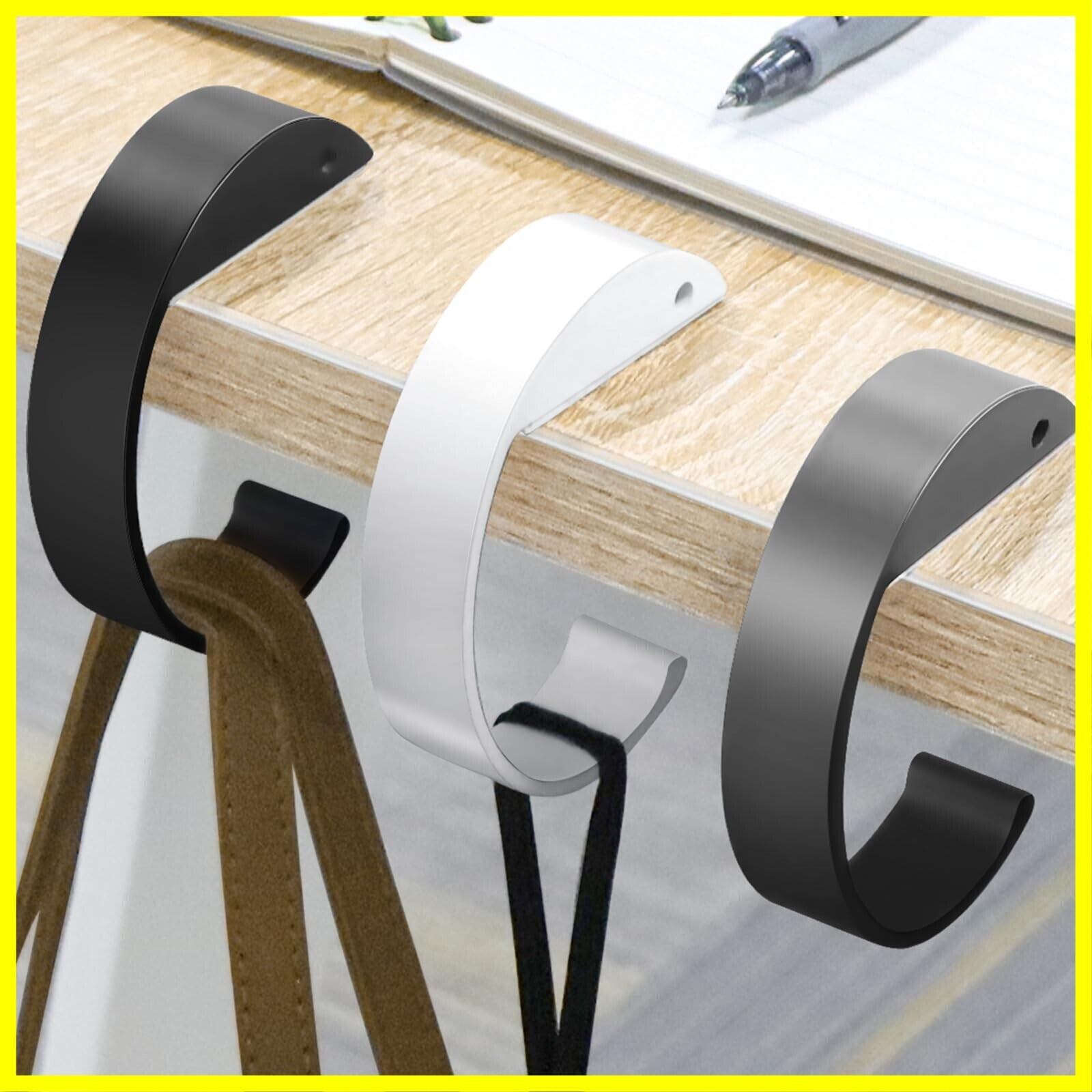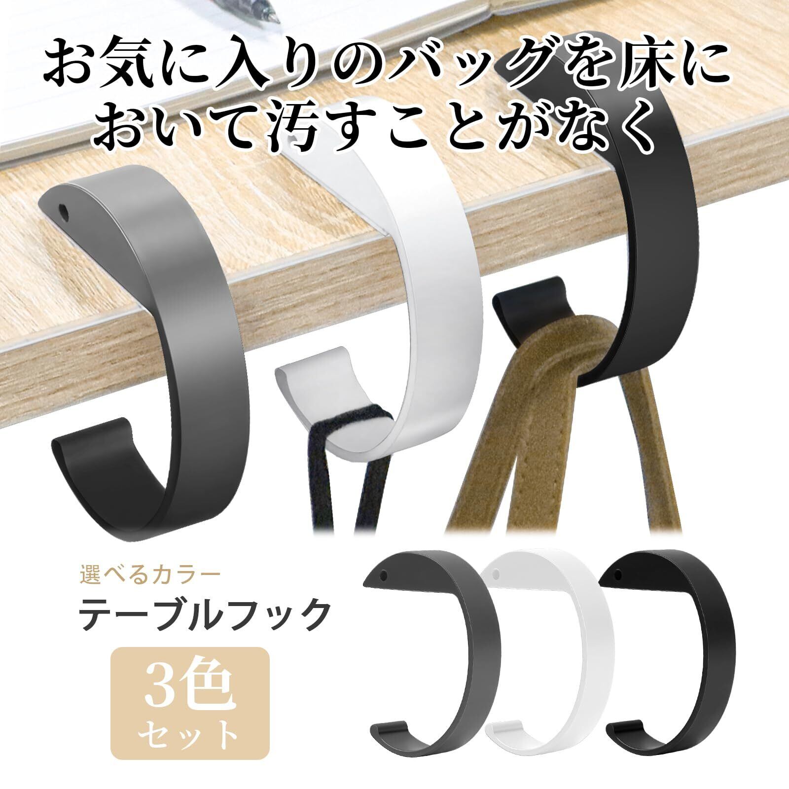 【 バッグの置き場所に困りません!】床が汚れていて直に鞄を置きたくない場合に役立つ携帯用のC字型ハンガーです。テーブルの端に引っ掛けて鞄などが下げられます。グレー、ホワイト、ブラックの3色セットで、自宅でも外出先でも使える