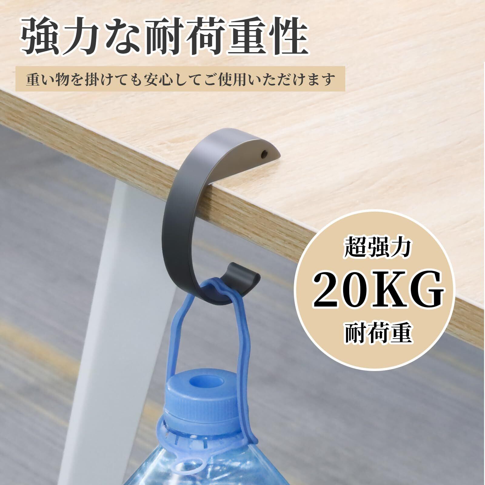 【 耐久性20㎏まで耐えられます 】高品質な合金材料で、耐久性に優れており錆びにくく長期的にご愛用いただけます。耐荷重量20㎏と、丈夫なつくりでパソコンやたくさんの資料が入った重たいバッグを吊り下げても問題ありません。本体重量は約65gで、かばんに入る、コンパクトに持ち運び便利