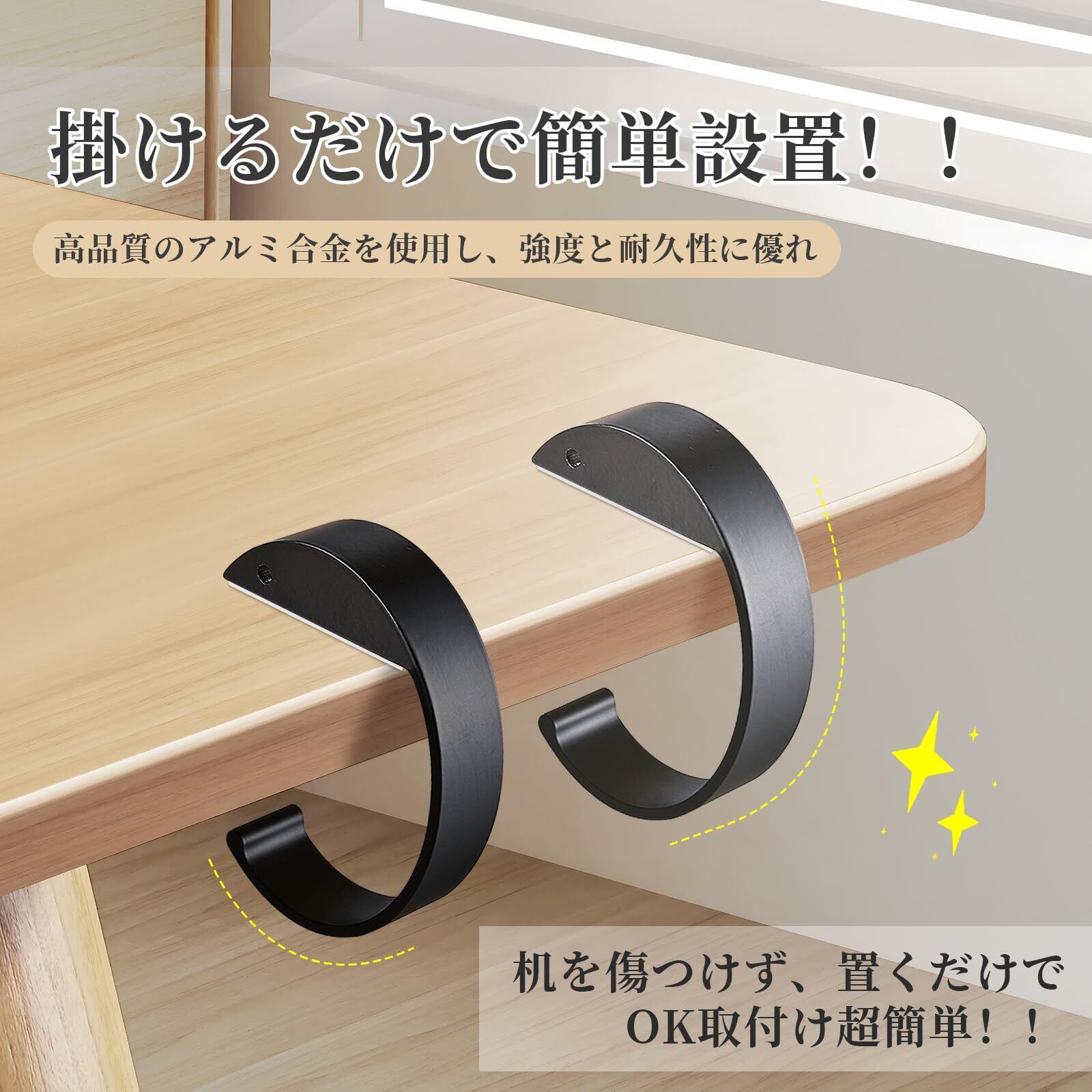 【安定性抜群】カバンフックの先端には滑り止めのパッドが取り付けられて、滑りを防ぐだけでなく、家具の表面を摩耗から保護することもできます。フックの端には丸型の突起があり、吊り下げたものが落下したり、傷がついたりするのを防ぐ