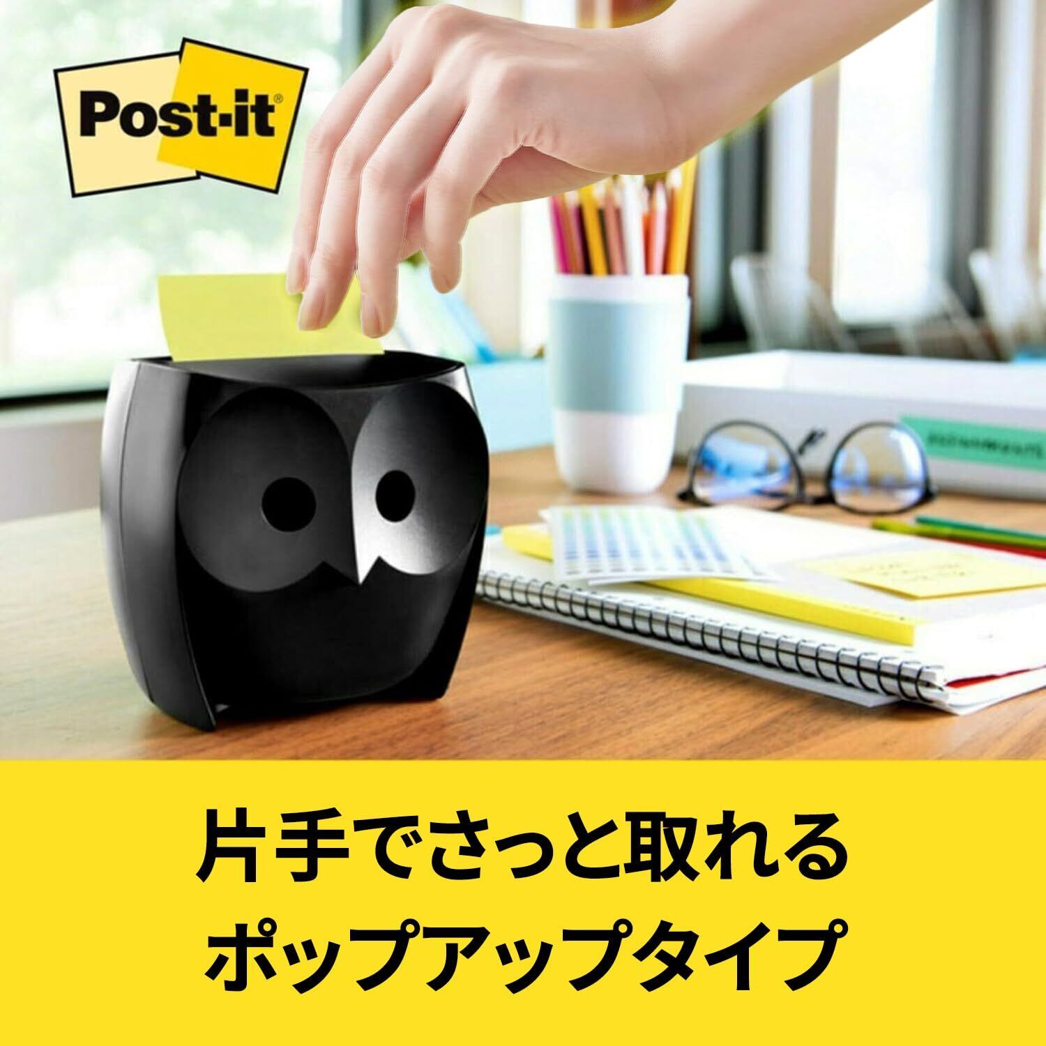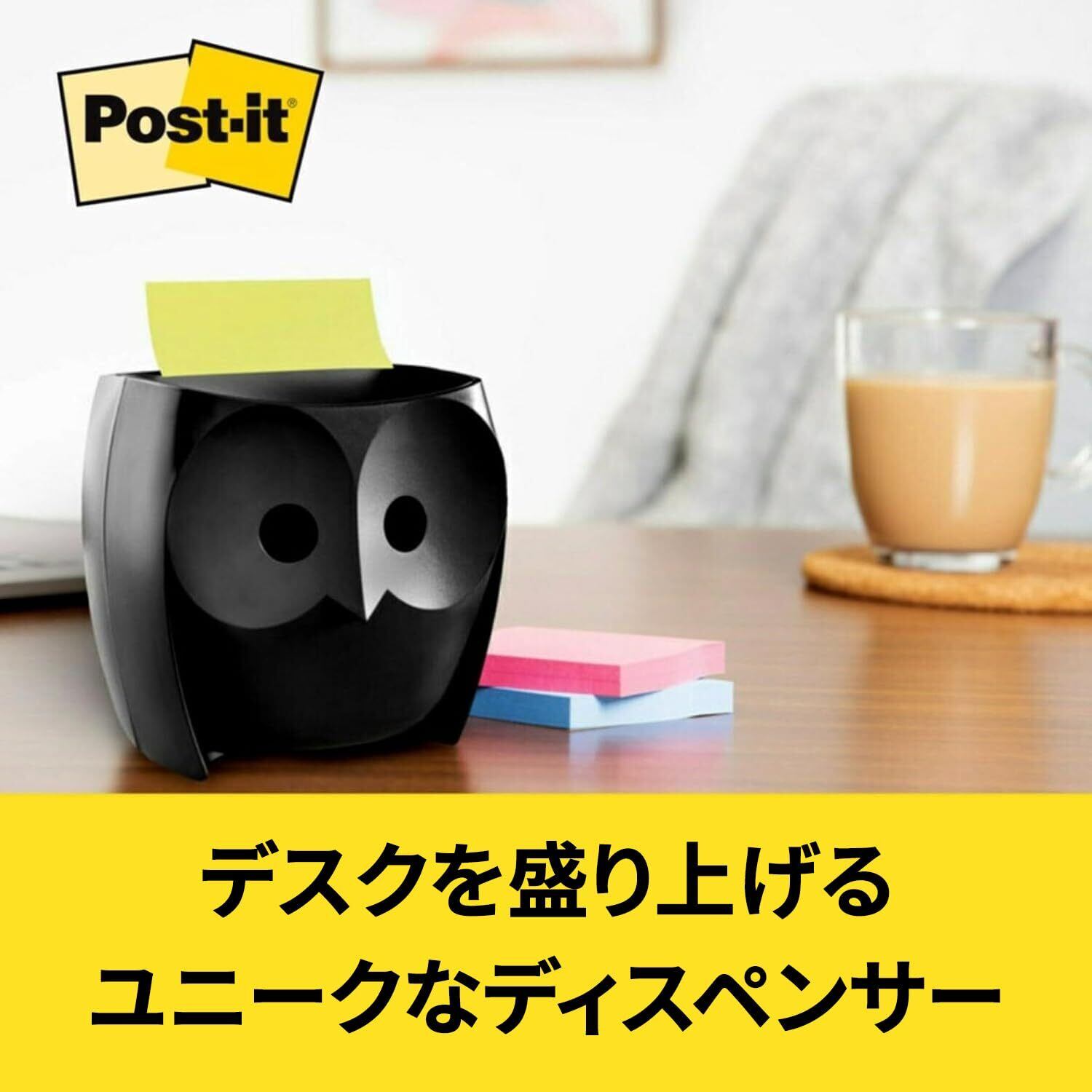 ポストイット 付箋 強粘着 ふせん ノート ポップアップタイプ デザインディスペンサー フクロウ ブラック OWL-330-BK