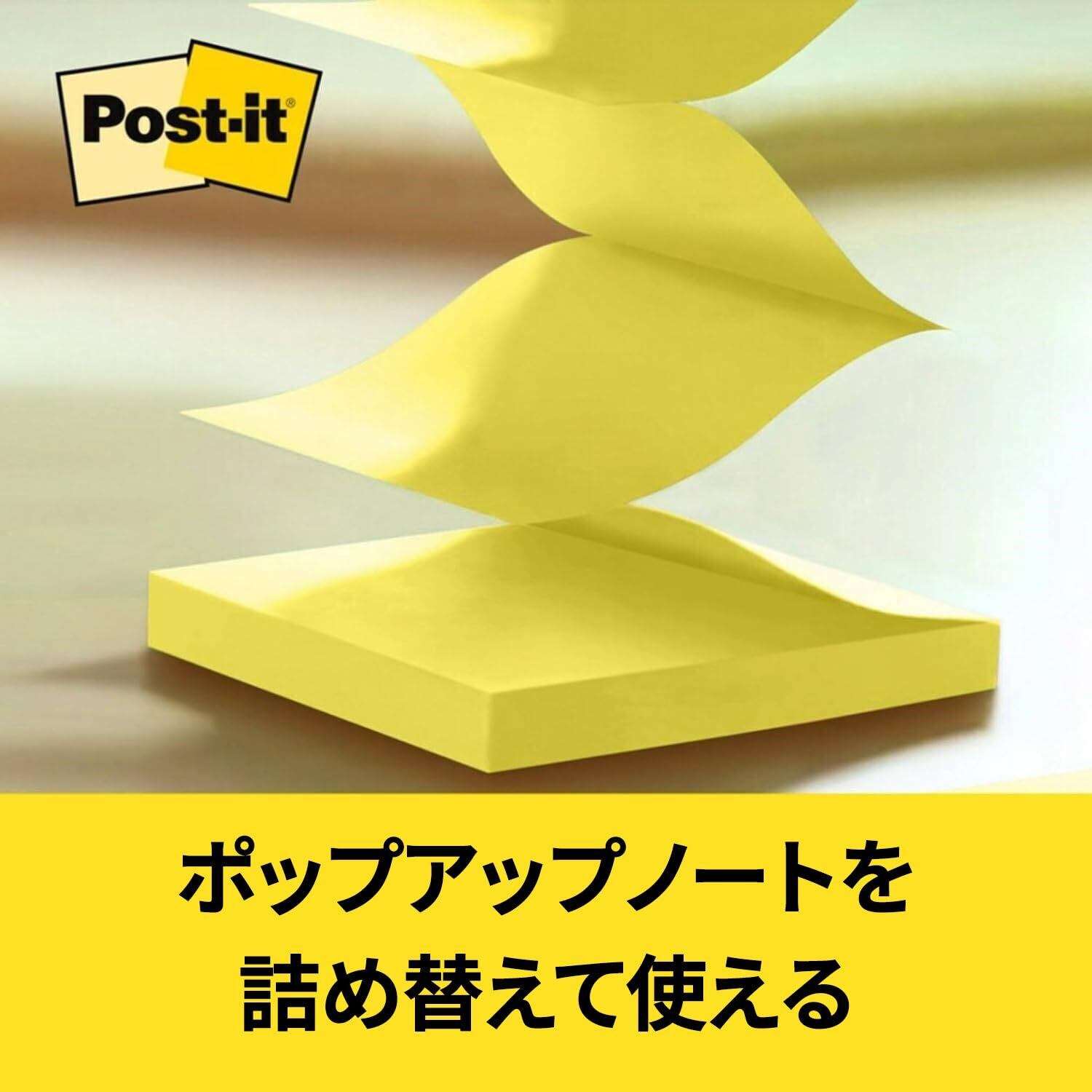 片手でサッと簡単に、一枚ずつ取り出せる、ポップアップ式。最後の一枚までムダなく使える。電話やパソコン操作中などの、メモやメッセージにとっても便利。