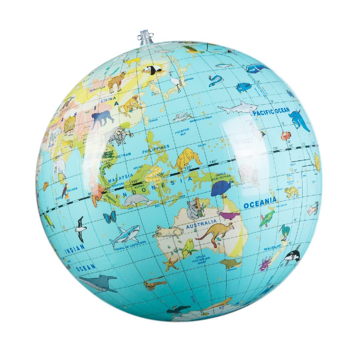 ふくらますと直径30cmの大きさ。世界の国々に生息する動物が描かれていて、まだ国や国境がわからない低年齢のお子さまから、動物をきっかけに興味を持ちやすいデザイン。好みが分かれにくく性別も問わないため、ご友人へのプチギフトやプレゼント交換にもおすすめです。