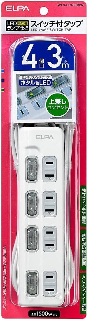 エルパ(ELPA) スイッチ付タップ コンセント 延長コード LED 上差し 4個口 3m WLS-LU43EB(W)