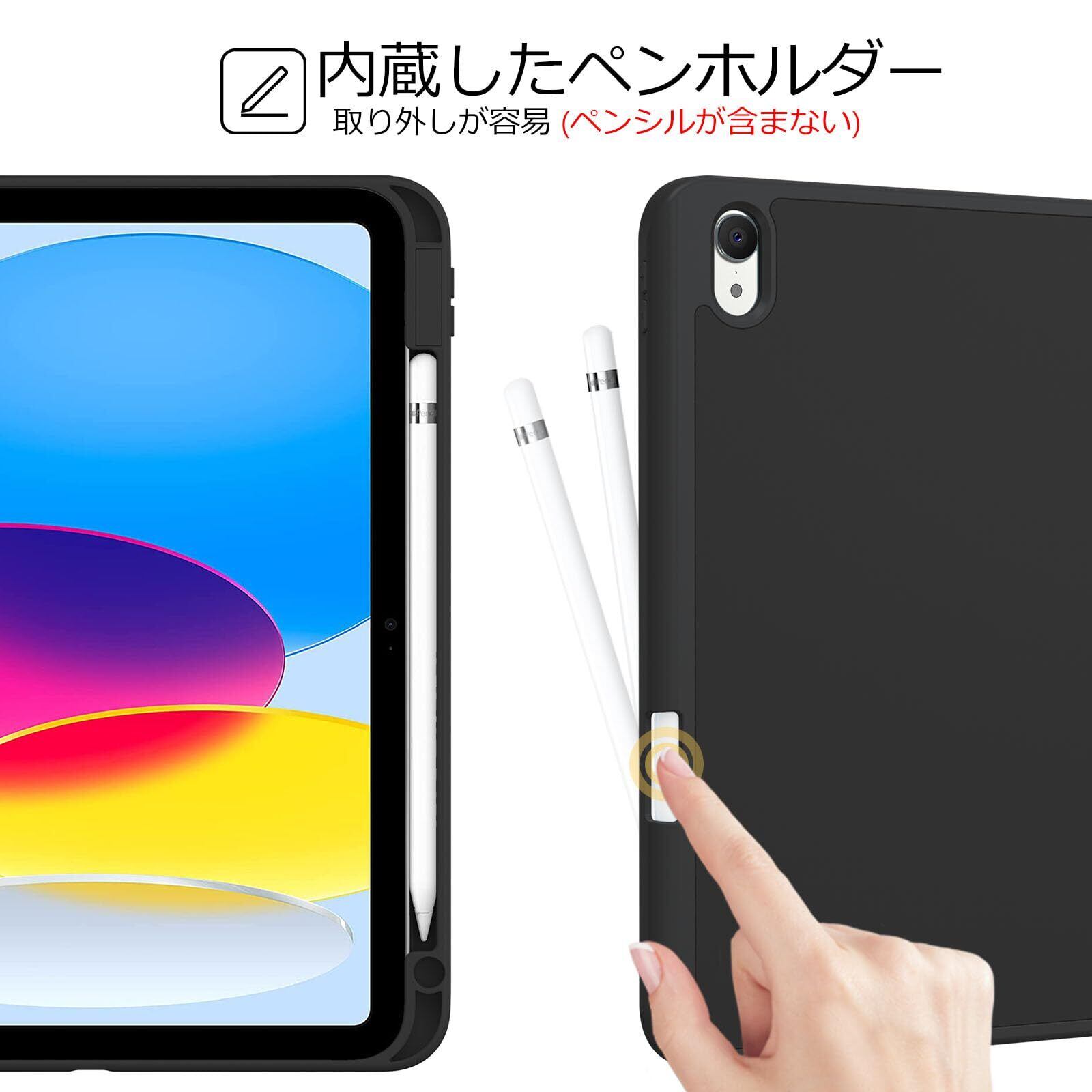 弾性のあるTPU材のバックカバーはiPadを衝撃、指紋、引っかき傷から保護しながら、装着もラクです。内蔵したマグネットにより、オートスリープ/ウェイクに対応します。