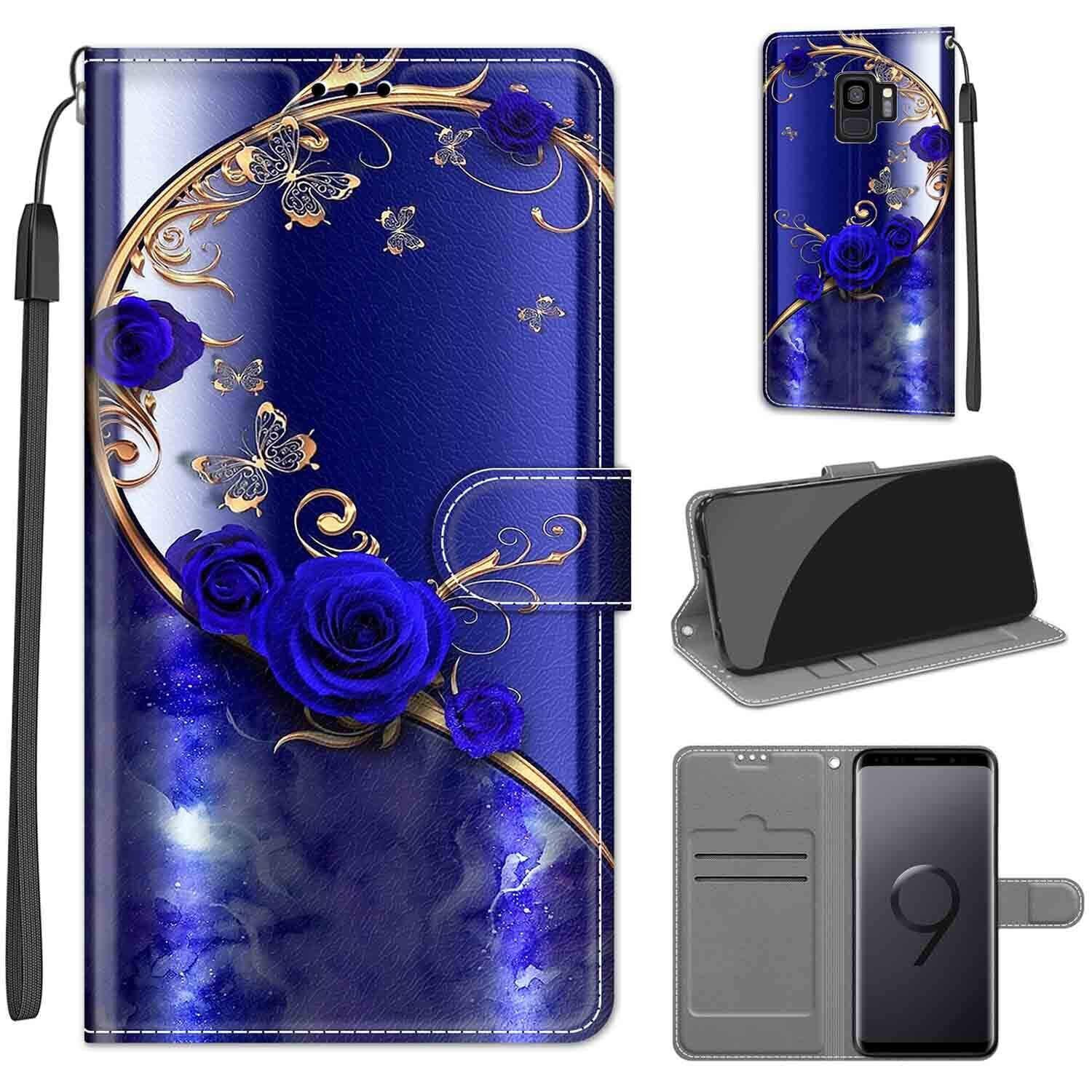 KENHONER Galaxy S9 ケース SC-02K SCV38 ケース 手帳型 対応 Galaxy S9 カバー Galaxy S9 手帳ケース サムスン ギャラクシー S9 ケース スマホケース 内蔵マグネット 携帯カバー カードポケット スタンド機能 落ち着いた色 軽量 便利 バラの蝶