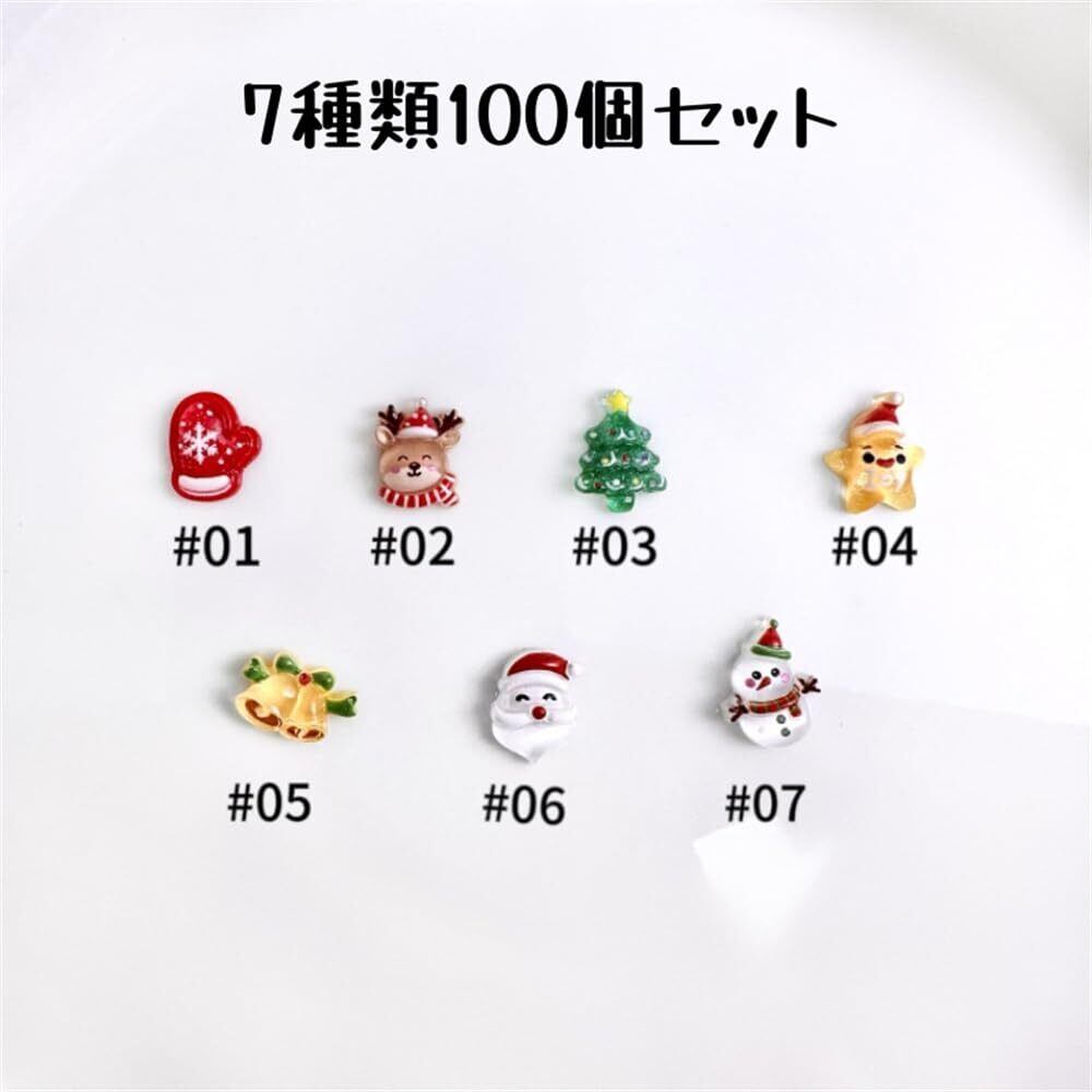 DUOLEIMI ネイルパーツ クリスマス パーツ 100pcs サンタ 雪だるま ネイルデザイン 3D 立体 アクセサリーパーツ 星 鹿 レジン用 DIY ジュエリーパーツ