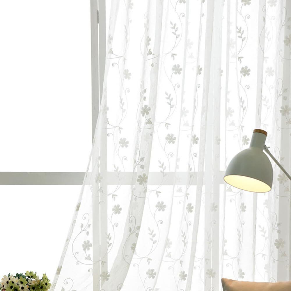 唯美 刺繍 花柄 葉柄レースカーテン2枚組 - 幅150x丈230 CM - 刺繍 透气 薄い 花葉 紗のカーテン 部屋 房间,オーダーサイズ可