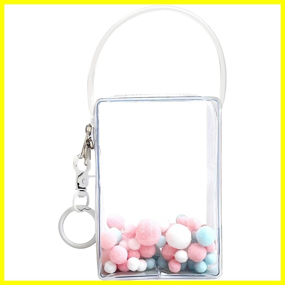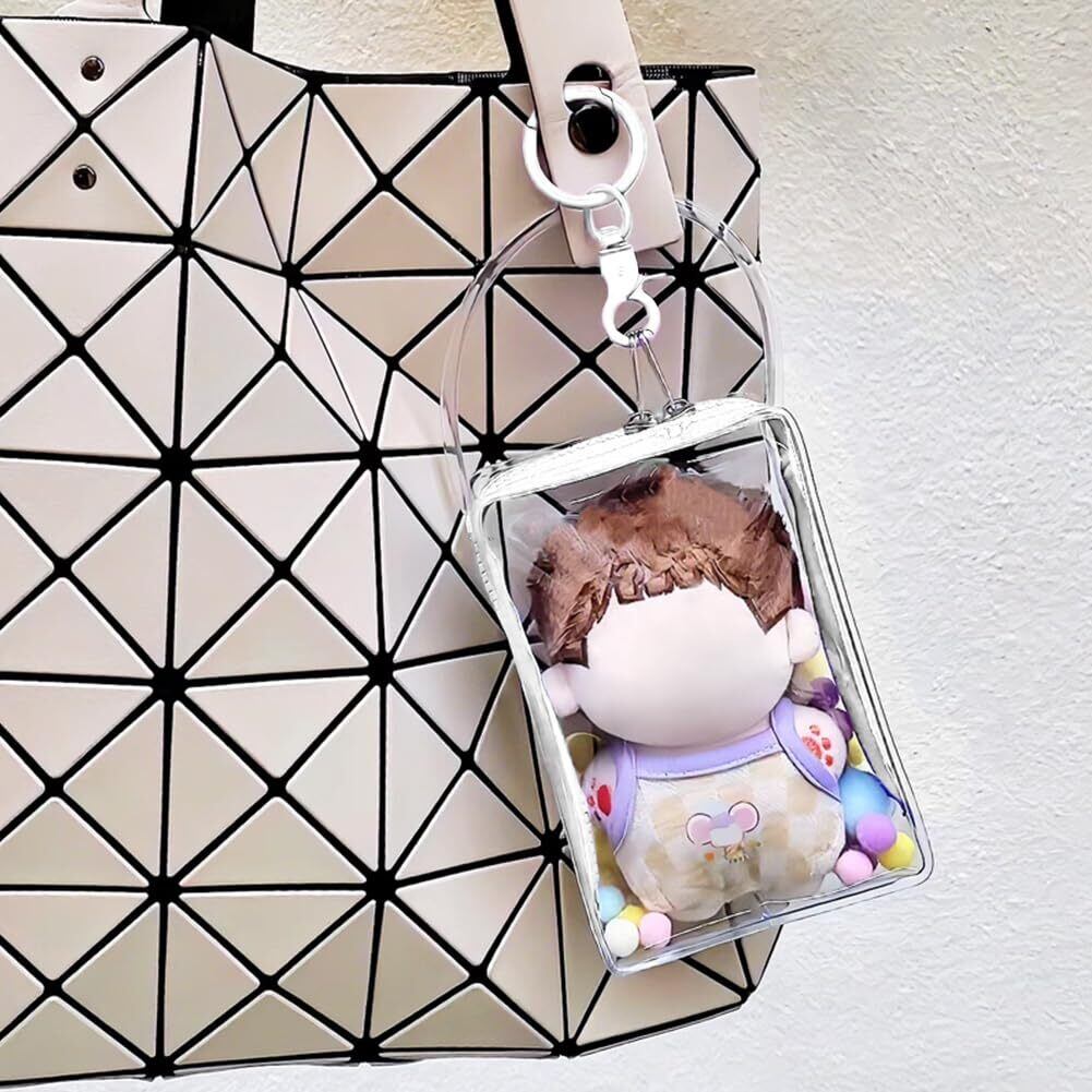 YUYAKESHI バッグ 痛バック 防塵 ぬいポーチ 外出 人形入れ 10cm綿人形 ぬいぐるみ用 透明 クリア 直方体 PVC ハンドル式 キーホルダー付 13cm高(ホワイト)
