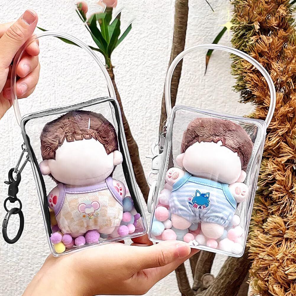 【適用】10cmぬいぐるみと服の収納・装飾用のケース、ねんどろいどなどの人形に外出用の見せバッグ。ポーチは人形のサイズにぴったり、人形はふらふらしません。見せバッグ、中身がはっきり見えます。人形と一緒にコミケに参加する・外出・町をぶらぶらする・旅行のお客様に適しています。