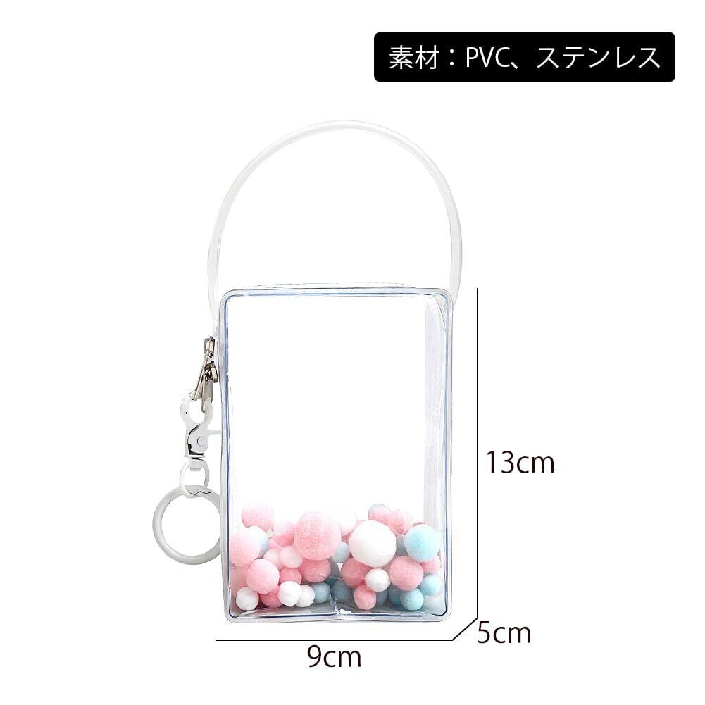【仕様】製品名前:四角形ぬいぐるみポーチ・痛バック。素材:PVC、ステンレス。サイズ:9*5*13cm。適用人形:10cmのぬいぐるみ、13cm以内のドールに適す。*購入する前に人形のサイズを測ってください。パッケージは以下を含む:ポーチ*1+同じ色系ポンポンボール*1セット+キーホルダー*1。カラー:ホワイト。