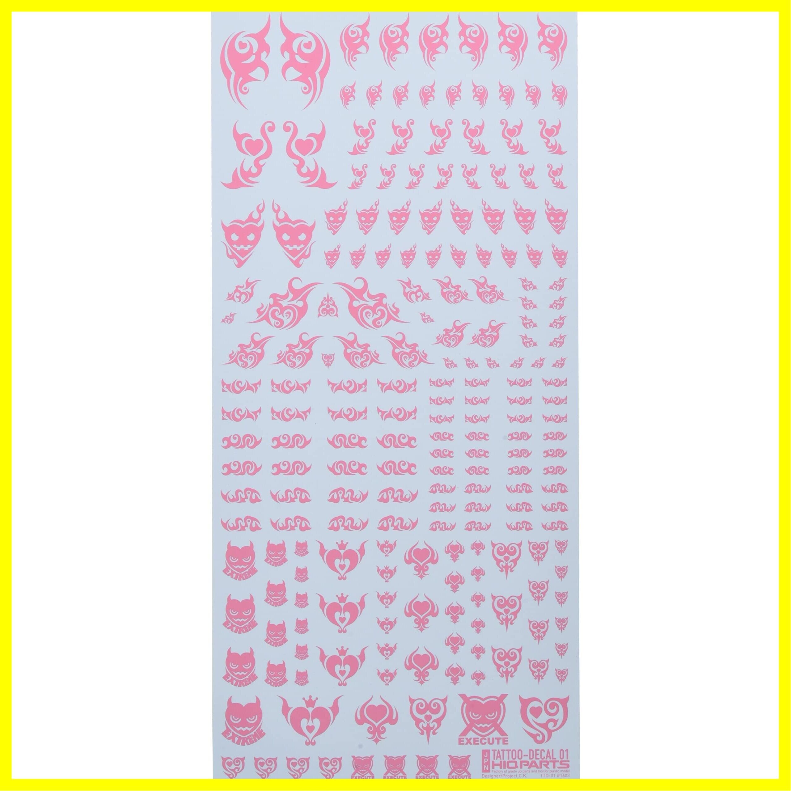 1/12フィギュアのカスタムアップ用、「ハート」をモチーフにした水転写式タトゥーデカールです。