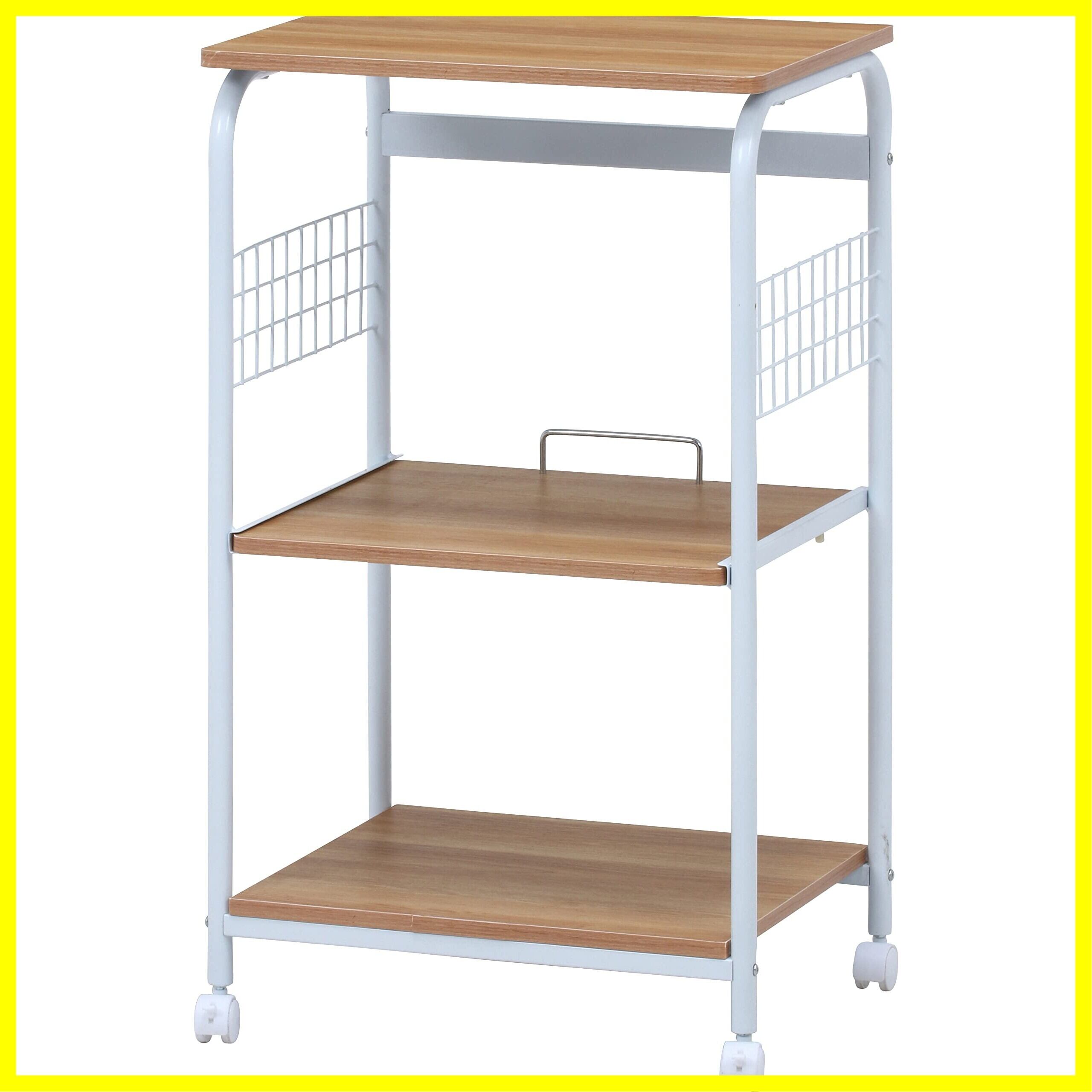 不二貿易 レンジ台 キッチンラック 幅51.5×41×高さ89.5cm ホワイト ナチュラル スライド棚 収納 レンジワゴン キャスター付き 14640