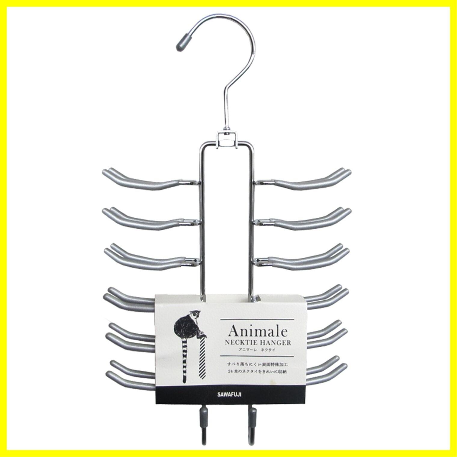 サワフジ ネクタイハンガー アニマーレネクタイハンガー シルバー 24本掛け 省スペース 滑らない 部屋 室内 干し おしゃれ 収納 多機能 跡がつかない クローゼット AN-04