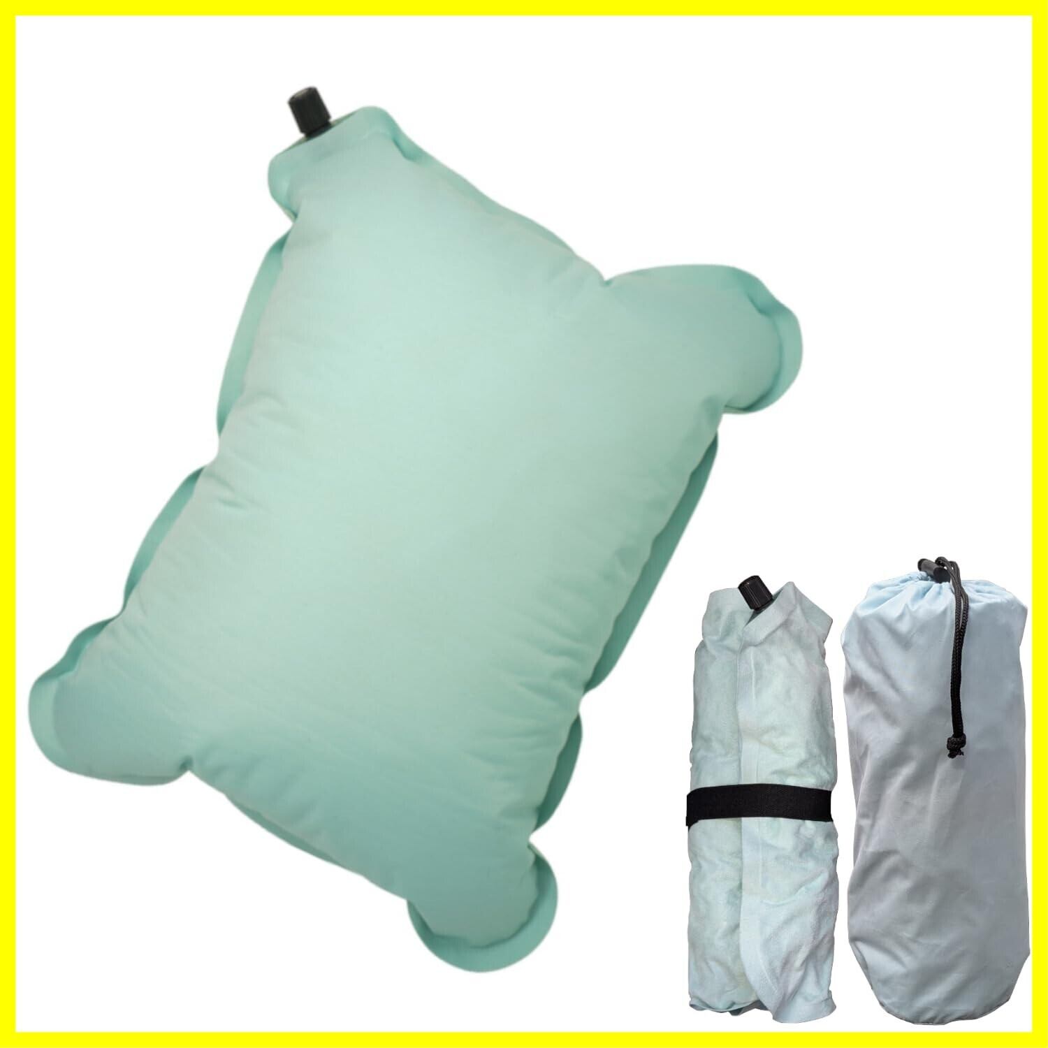 パステルカラー インフレーターピロー 枕 クッション グリーン 自動膨張 リバーシブル 収納袋付き