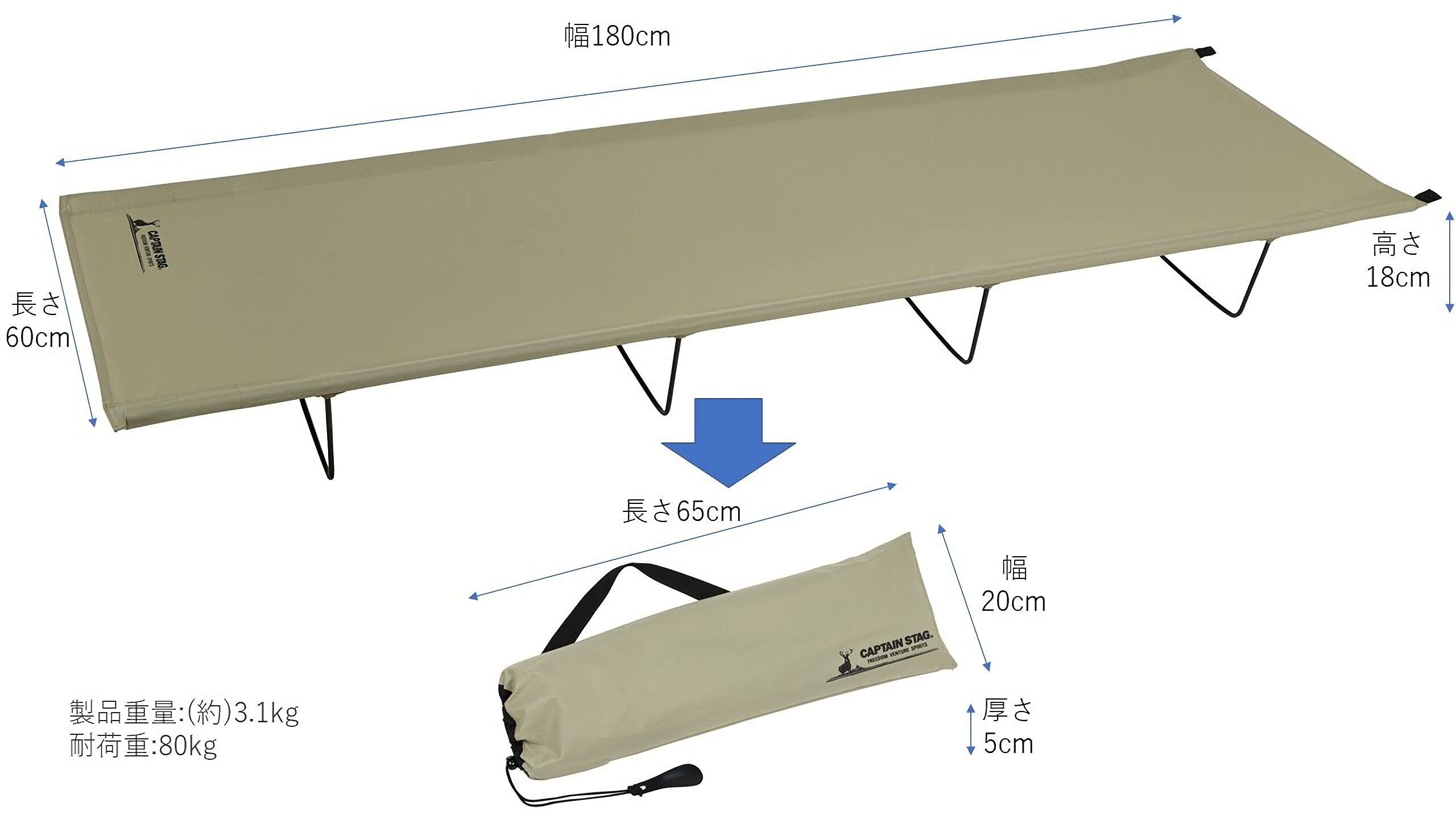 組立サイズ:(約)幅180×長さ60×高さ18cm、収納サイズ:(約)20×5×長さ65cm
