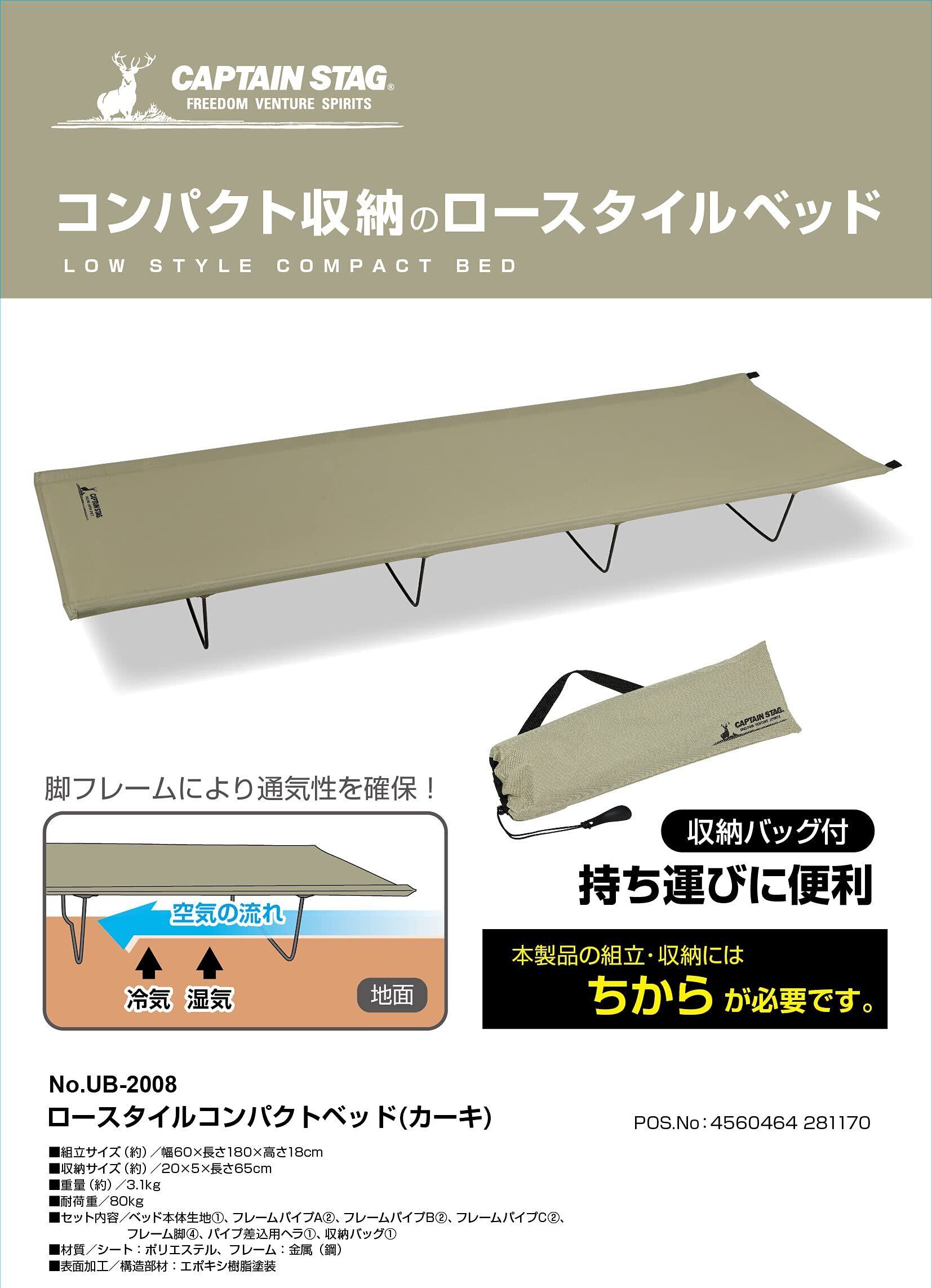 キャプテンスタッグ(CAPTAIN STAG) アウトドアベッド コット ロースタイルコンパクトベッド 収納バッグ付き 【ブラック/カーキ】 UB-2005/UB-2008